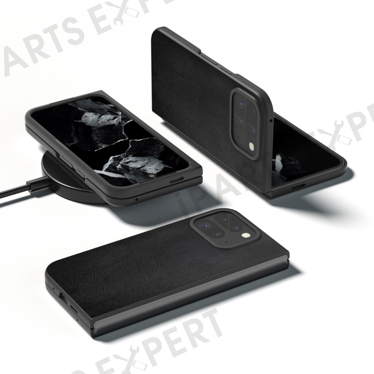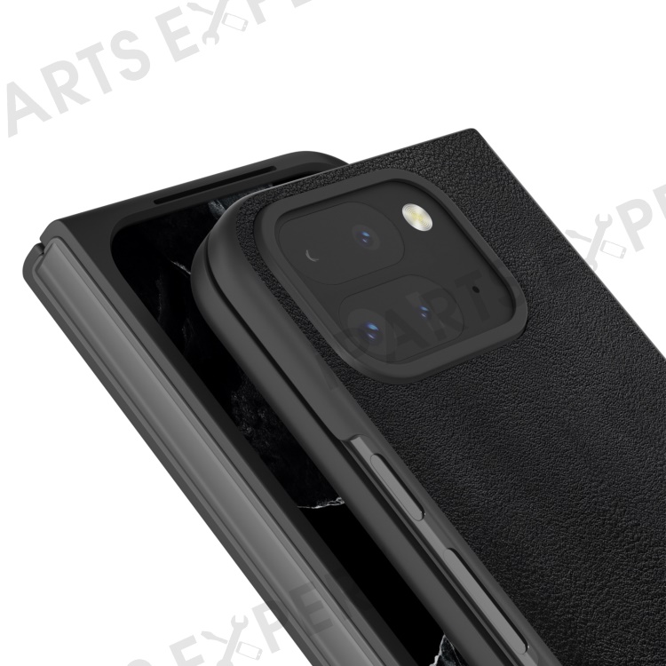 For Google Pixel 9 Pro Fold 5G Case Anti-Scratch PU Leather Coated PC Phone Cover - Black