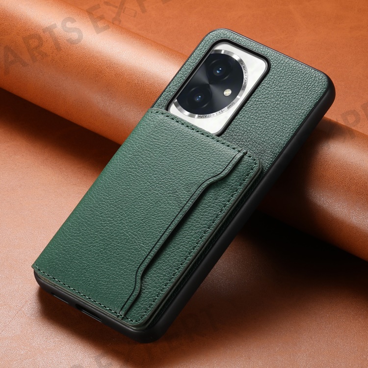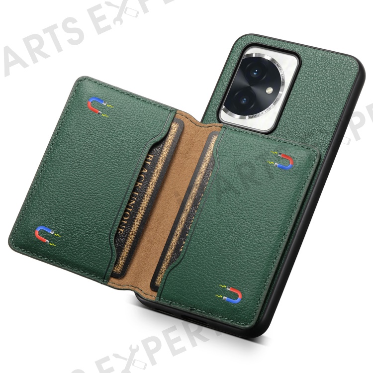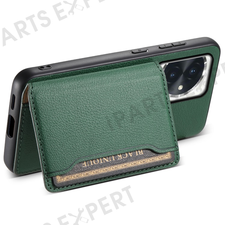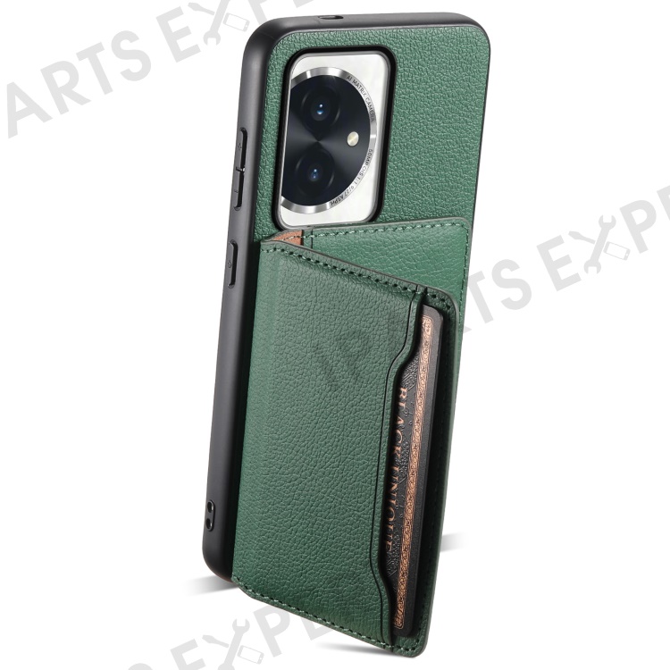 For Honor 100 5G Case Kickstand Calf Texture PU Hybrid Phone Cover - Green