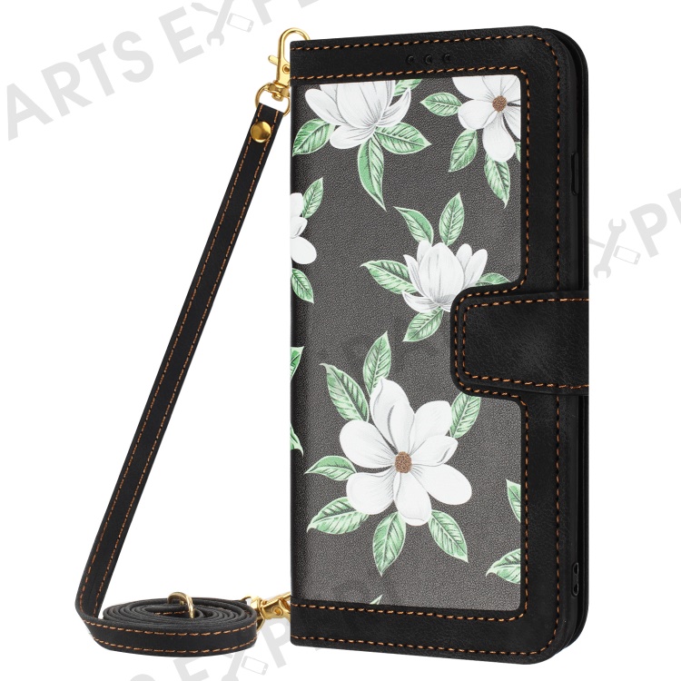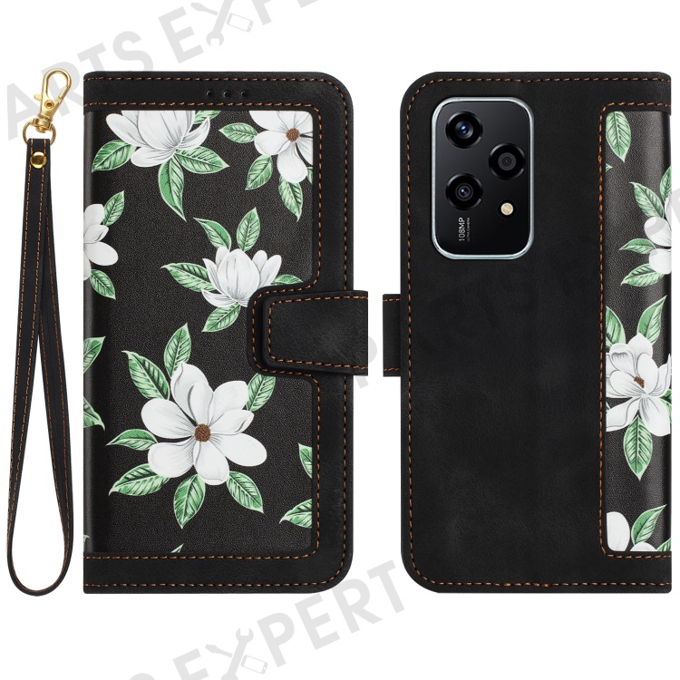 For Honor 200 Lite Case PU Leather Floral Phone Cover with Card Slots - Black