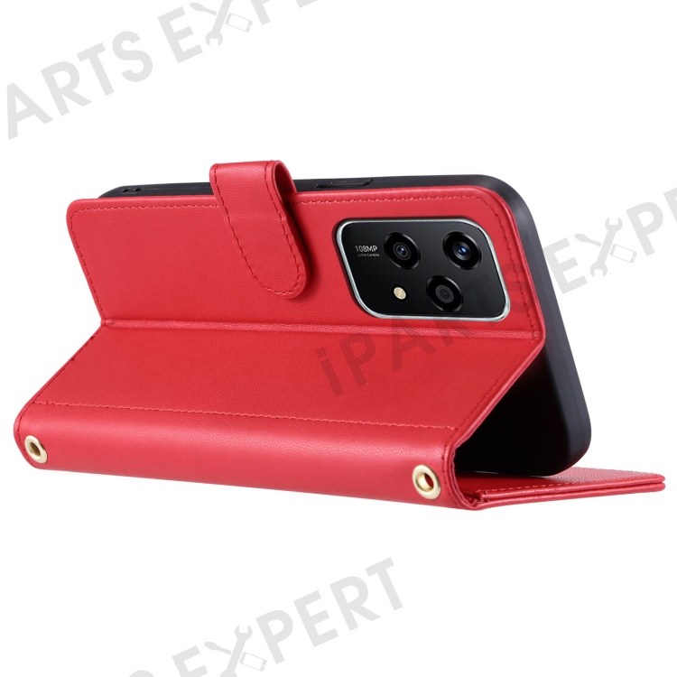 For Honor 200 Lite Wallet Case Rhombus Grid PU Leather Phone Cover - Red