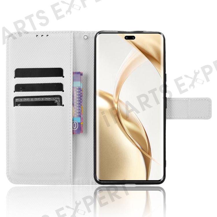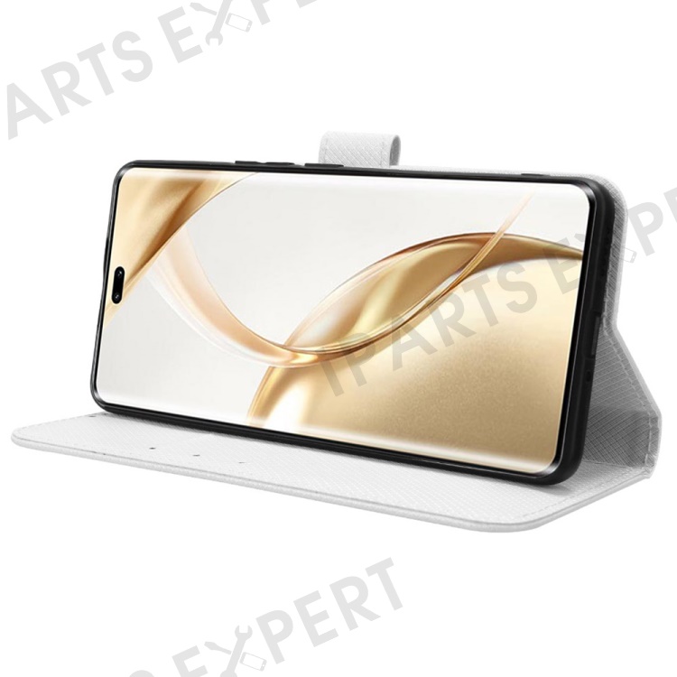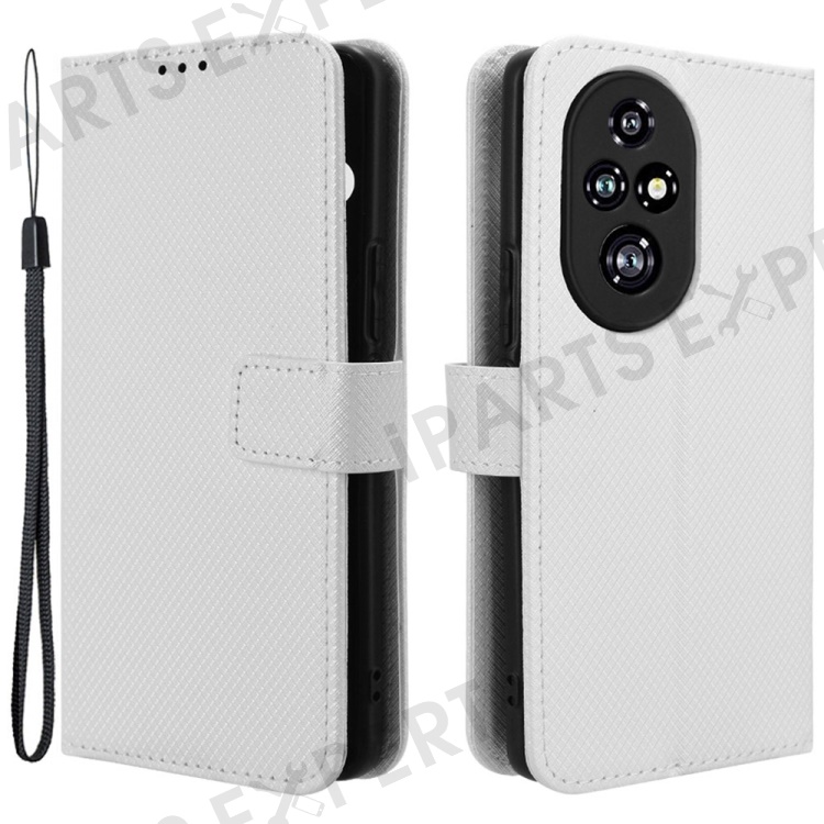 For Honor 200 Pro 5G Case Flip Wallet Diamond Texture PU Leather Phone Cover - White