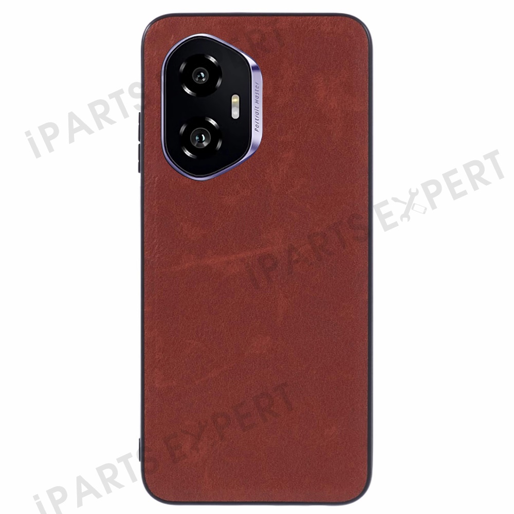 For Honor 300 Case Retro Leather Coated PC + TPU Phone Cover - Brown