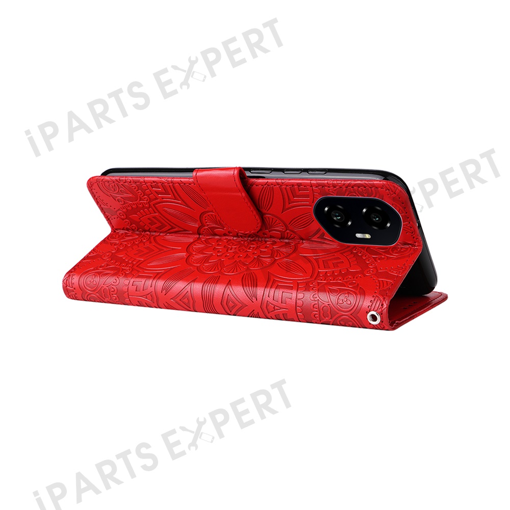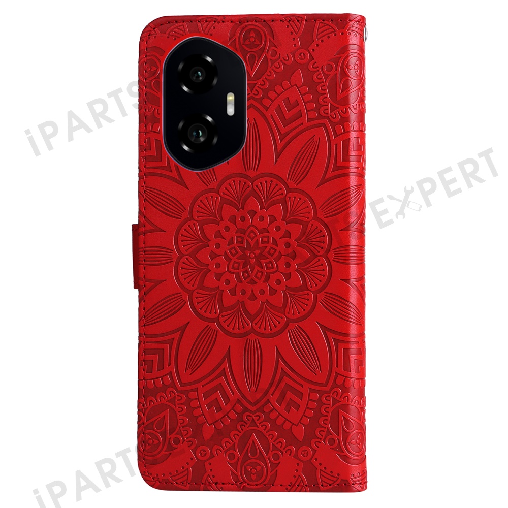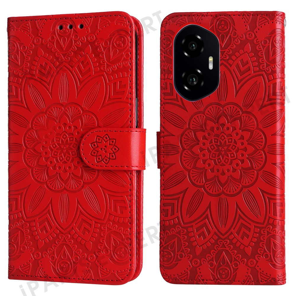 For Honor 300 Case Sunflower Imprint Leather Wallet Phone Cover - Red