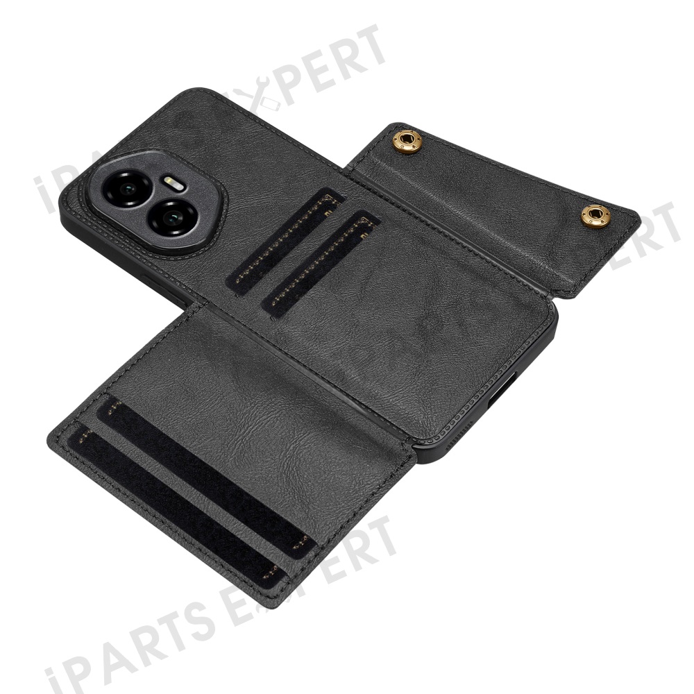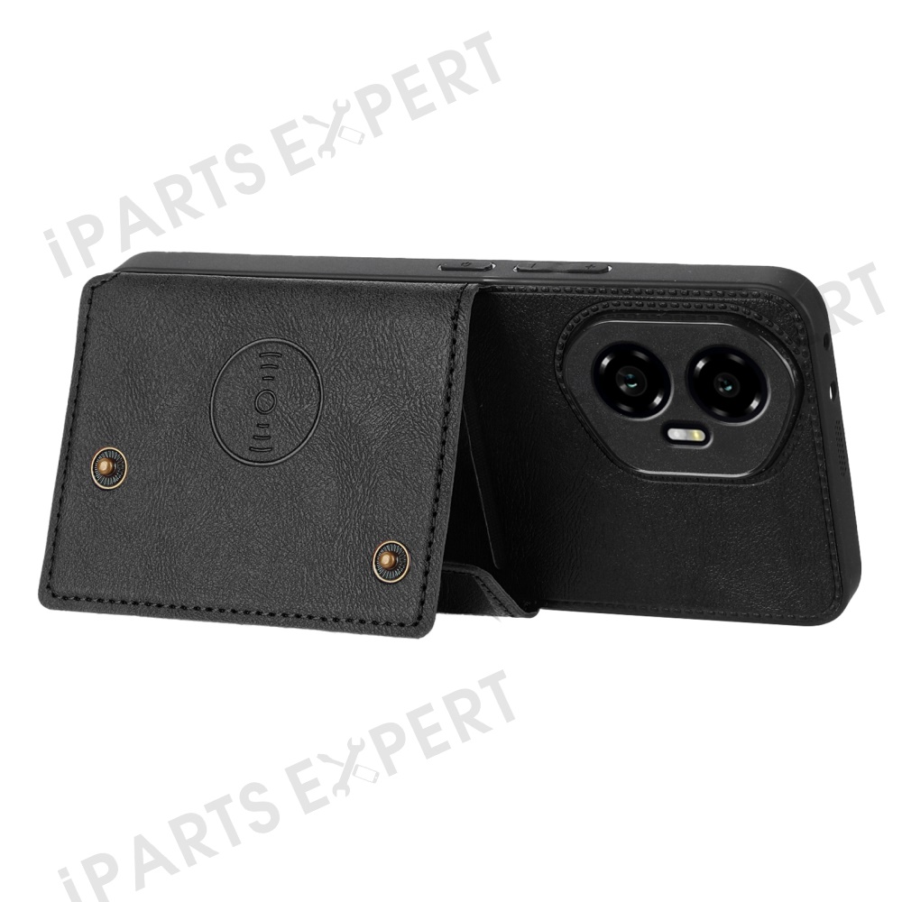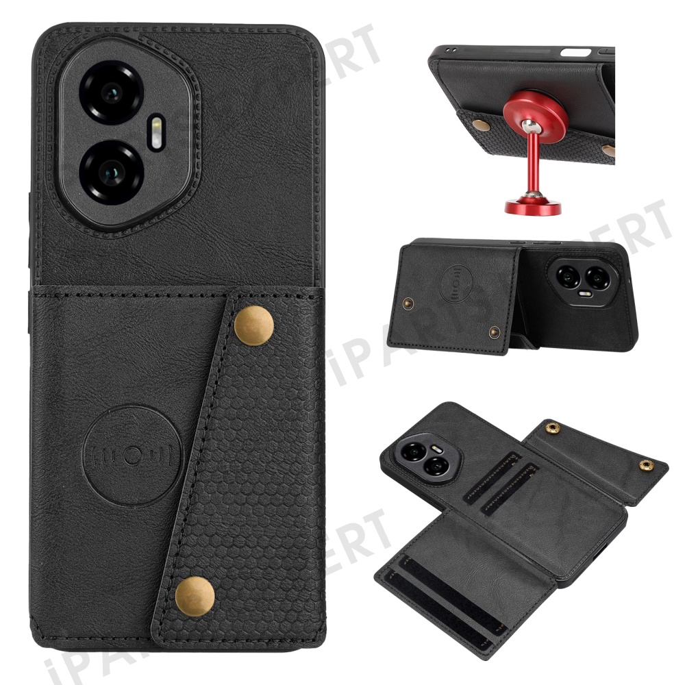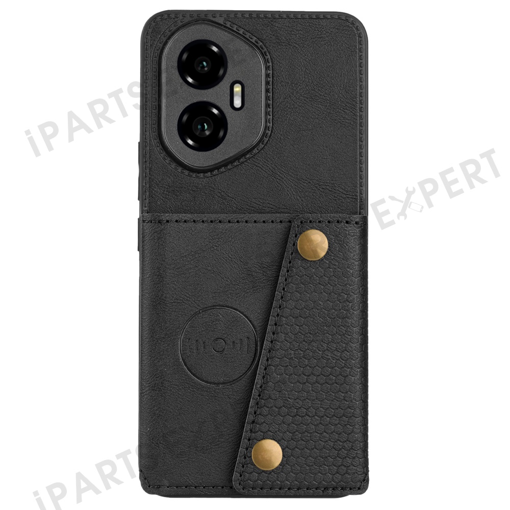 For Honor 300 Case with Card Slots Kickstand Leather + TPU Phone Cover - Black