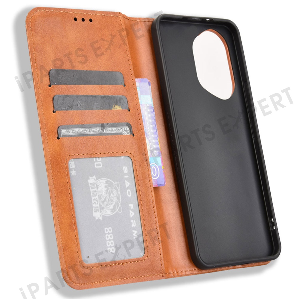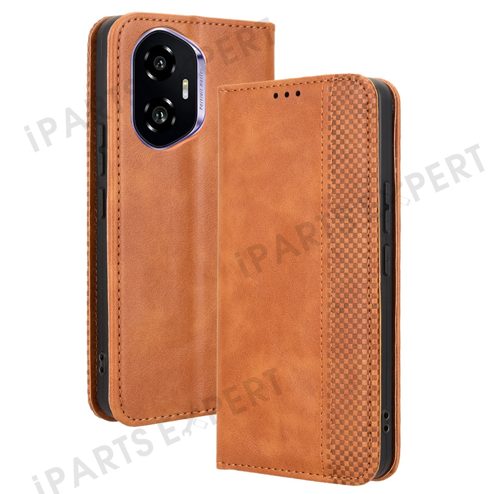 For Honor 300 Leather Case Wallet Stand Retro Texture Phone Cover - Brown