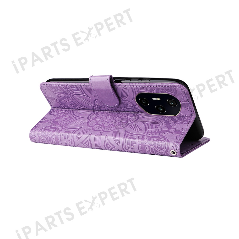 For Honor 300 Pro / 300 Ultra Case Sunflower Imprint Leather Wallet Phone Cover - Purple