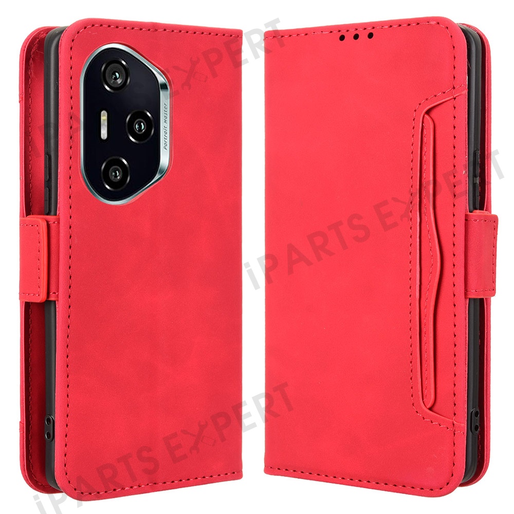 For Honor 300 Pro / 300 Ultra Leather Case Phone Wallet Cover with Multiple Card Slots - Red
