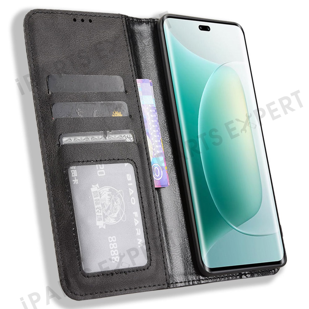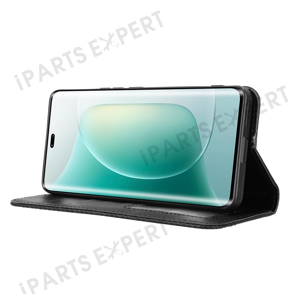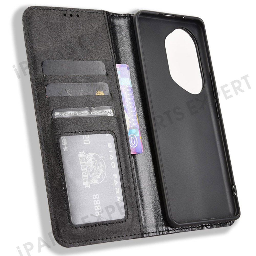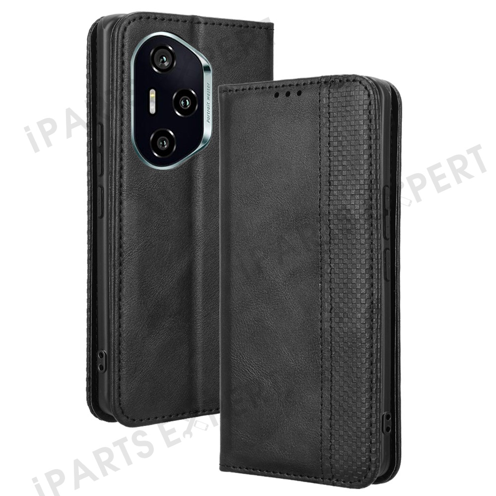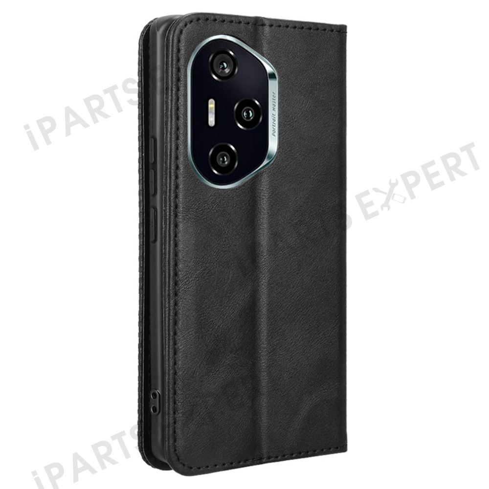 For Honor 300 Pro / 300 Ultra Leather Case Wallet Stand Retro Texture Phone Cover - Black