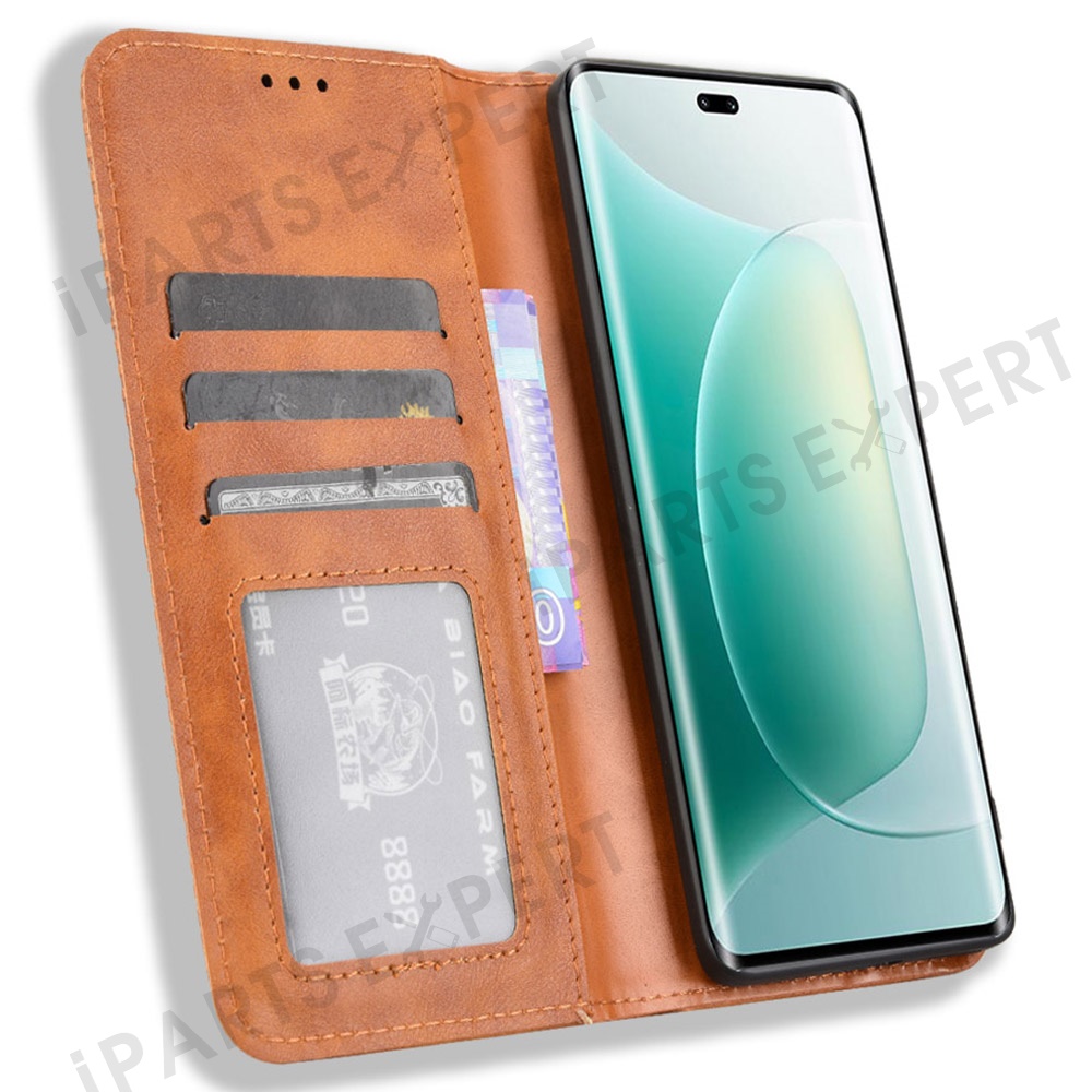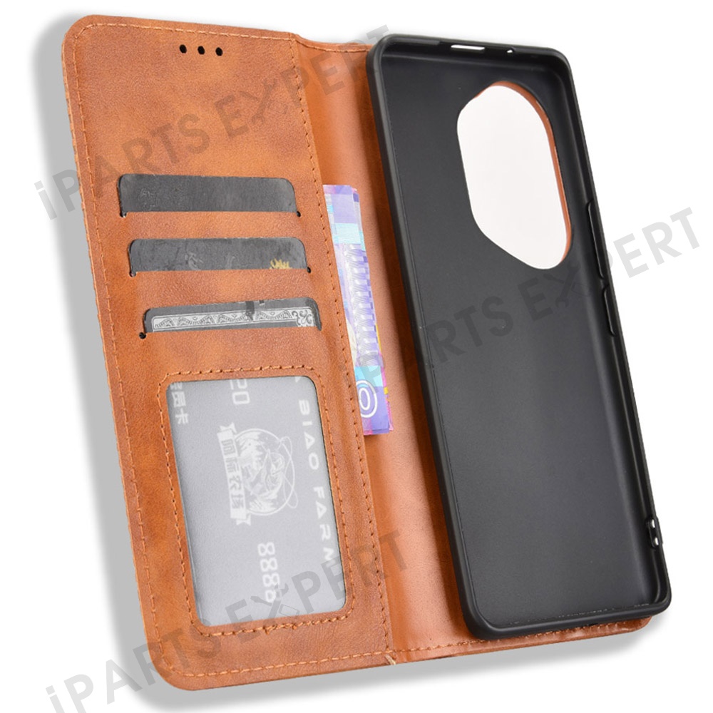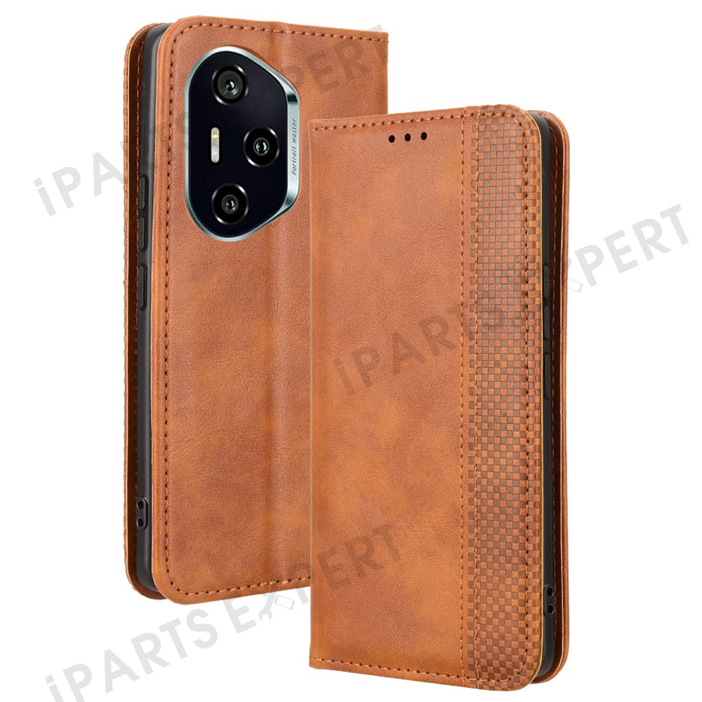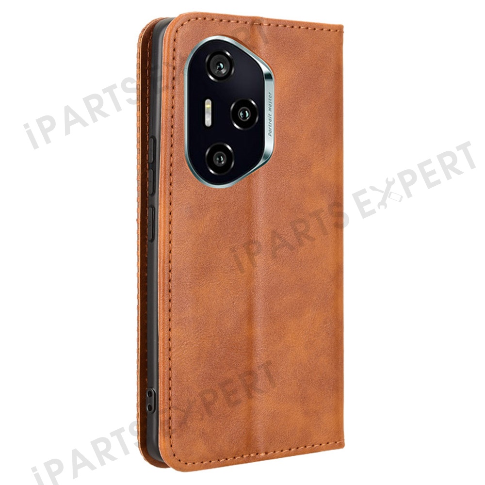 For Honor 300 Pro / 300 Ultra Leather Case Wallet Stand Retro Texture Phone Cover - Brown