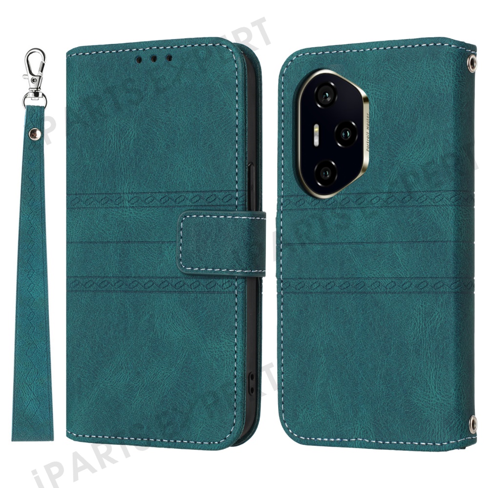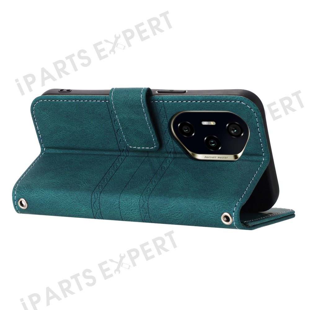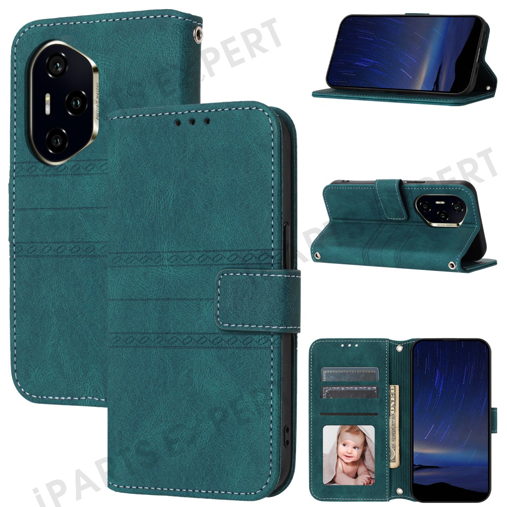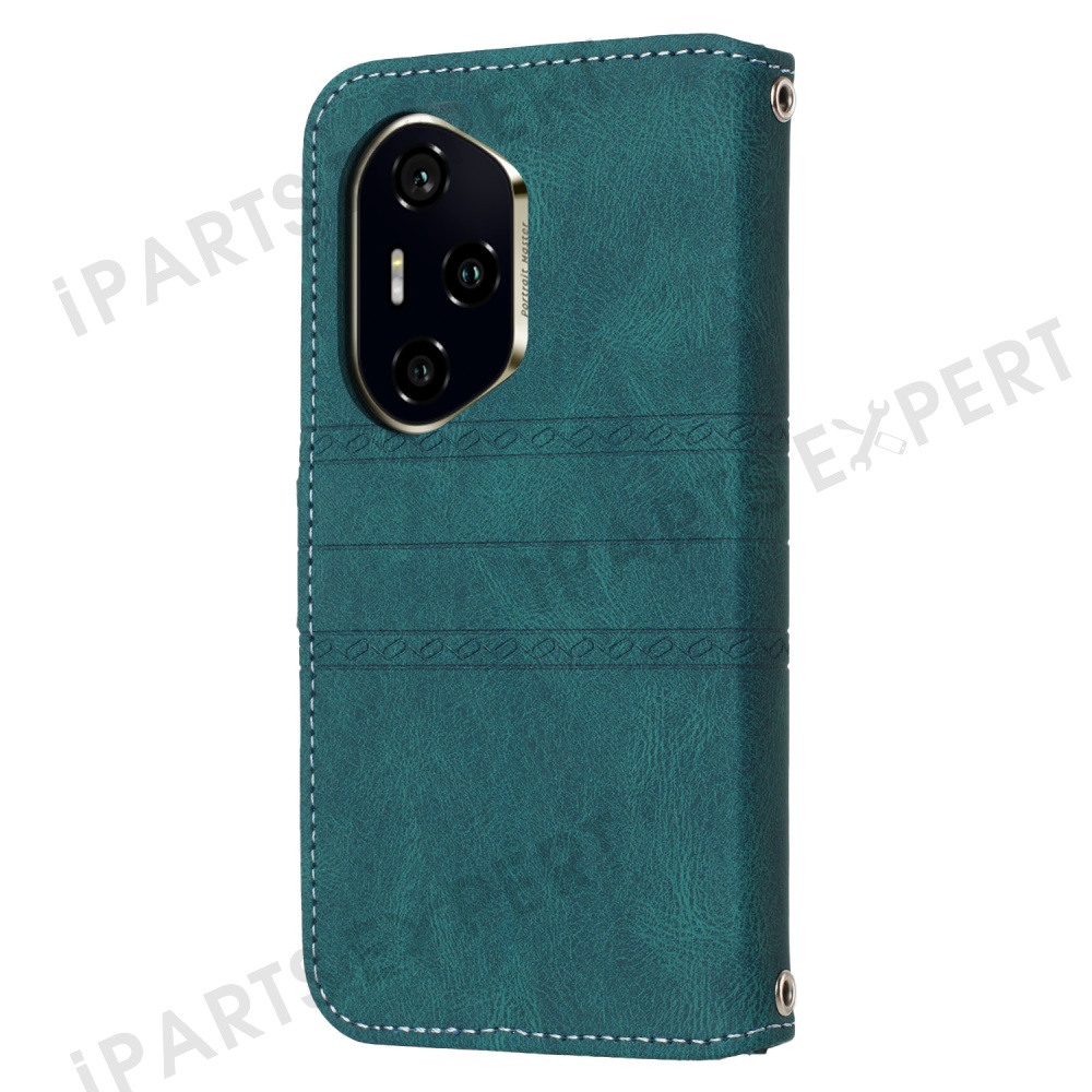 For Honor 300 Pro Case Wallet Skin-Touch Leather Imprinted Phone Cover - Blackish Green
