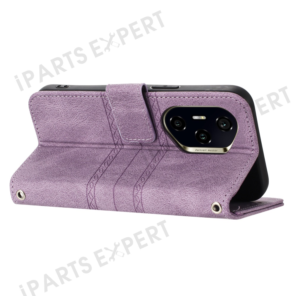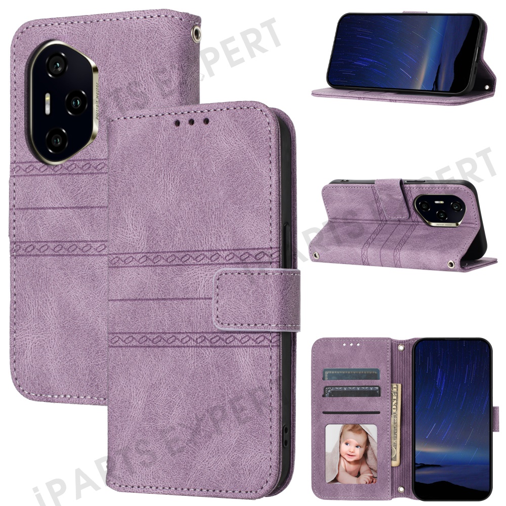 For Honor 300 Pro Case Wallet Skin-Touch Leather Imprinted Phone Cover - Purple