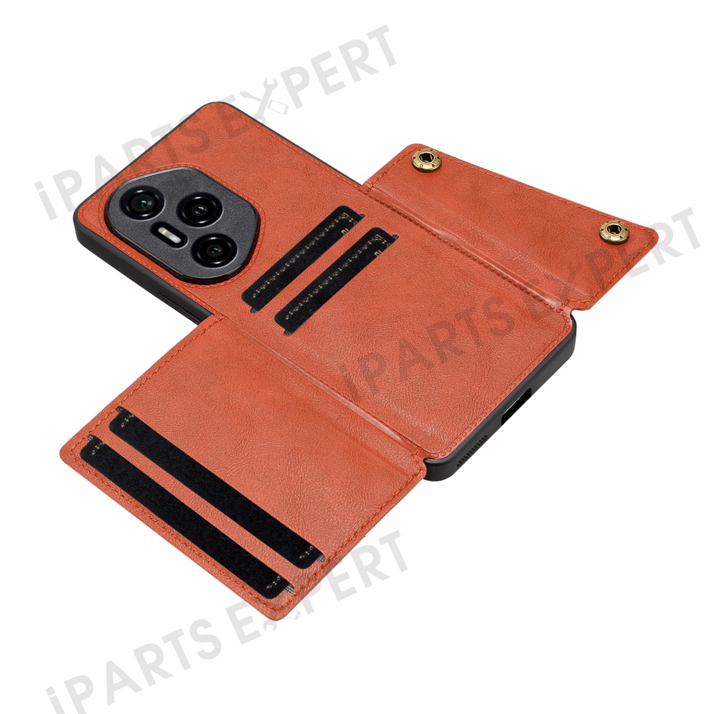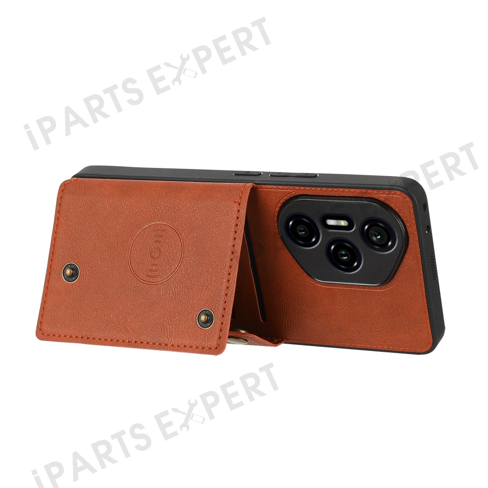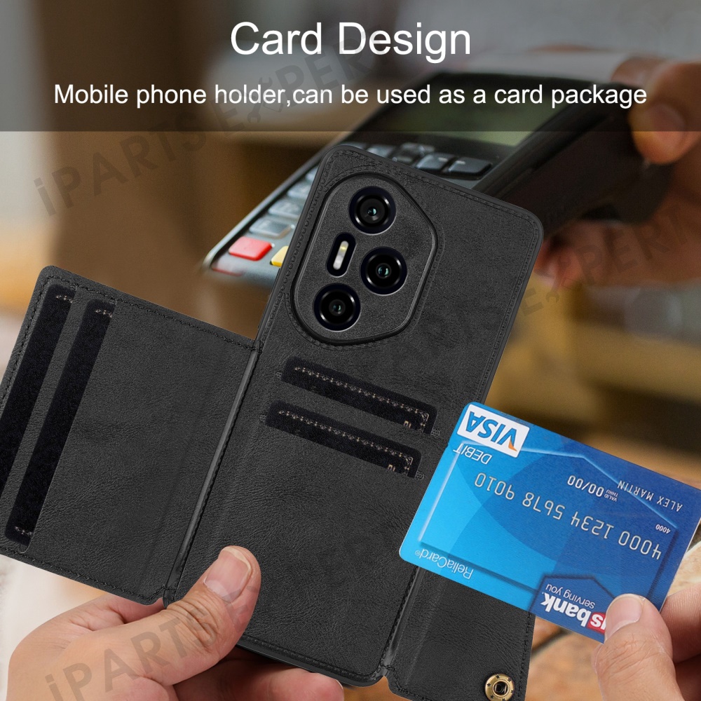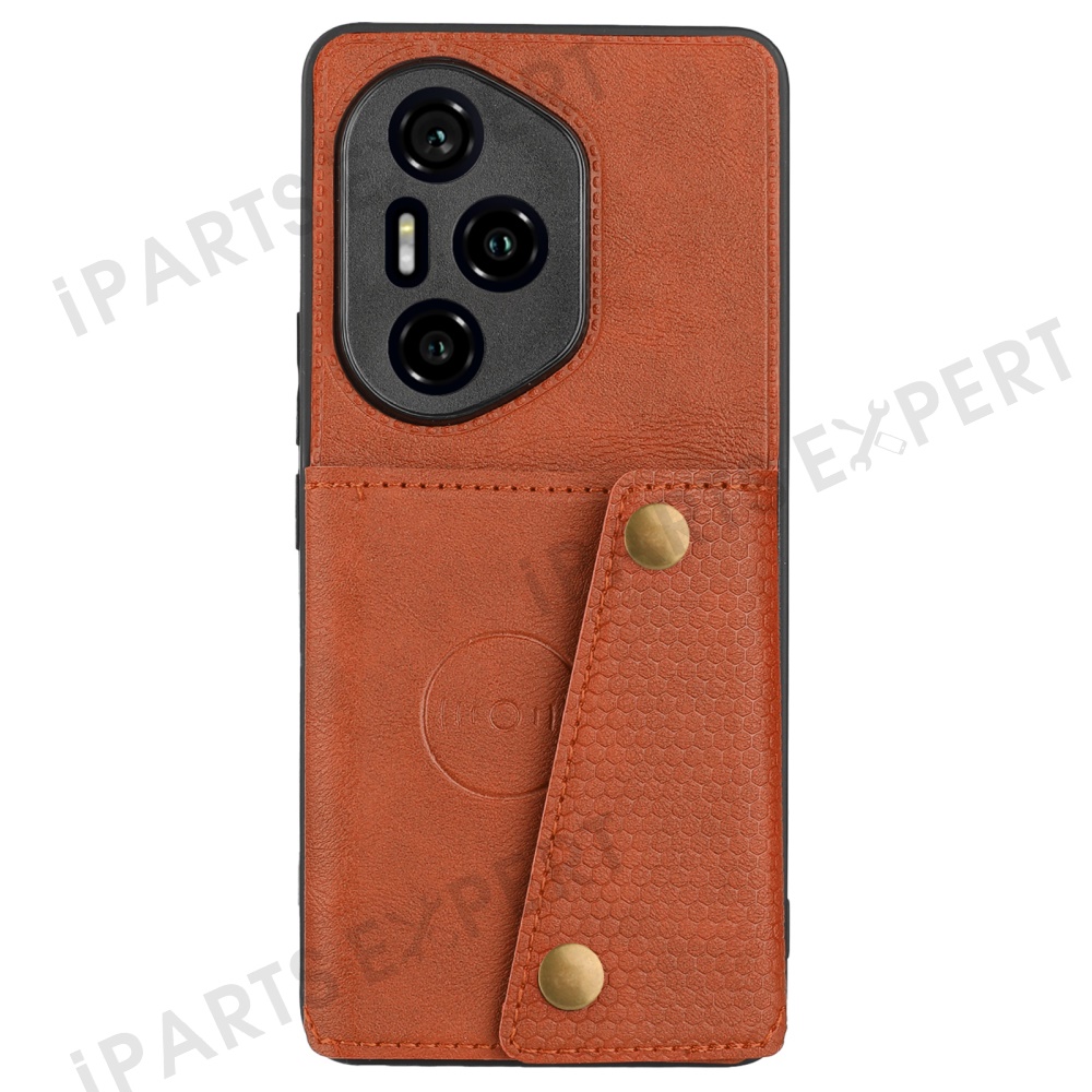 For Honor 300 Pro Case with Card Slots Kickstand Leather + TPU Phone Cover - Brown