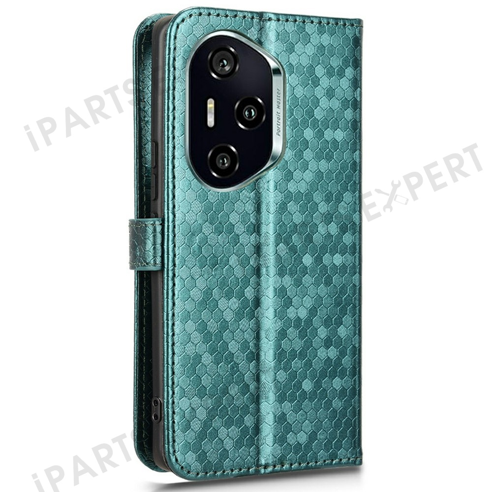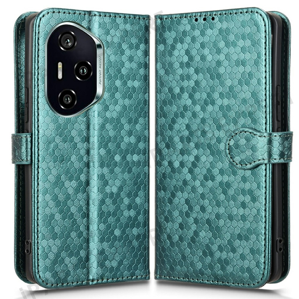 For Honor 300 Pro Wallet Case Dot Pattern Imprint PU Leather Phone Cover - Green