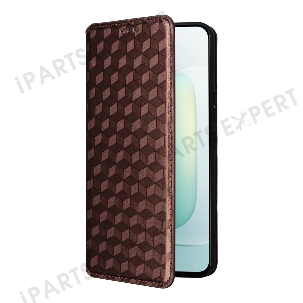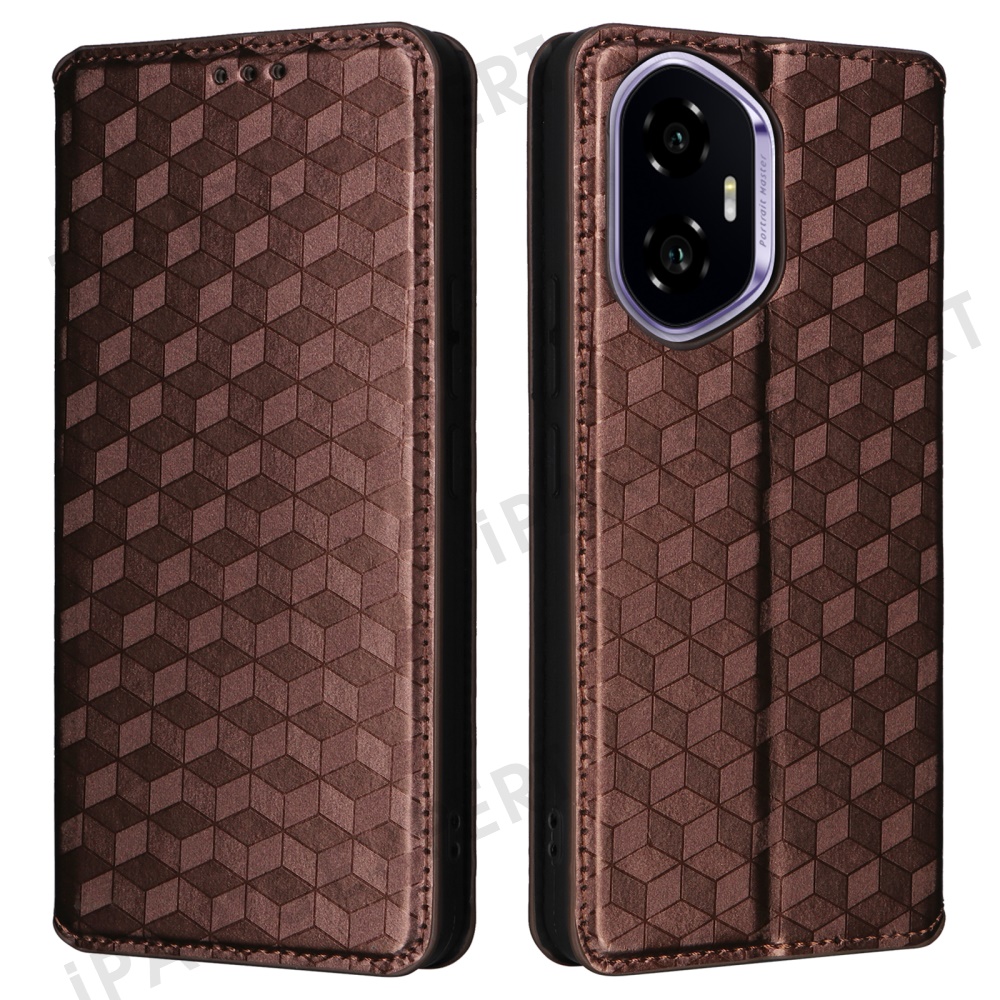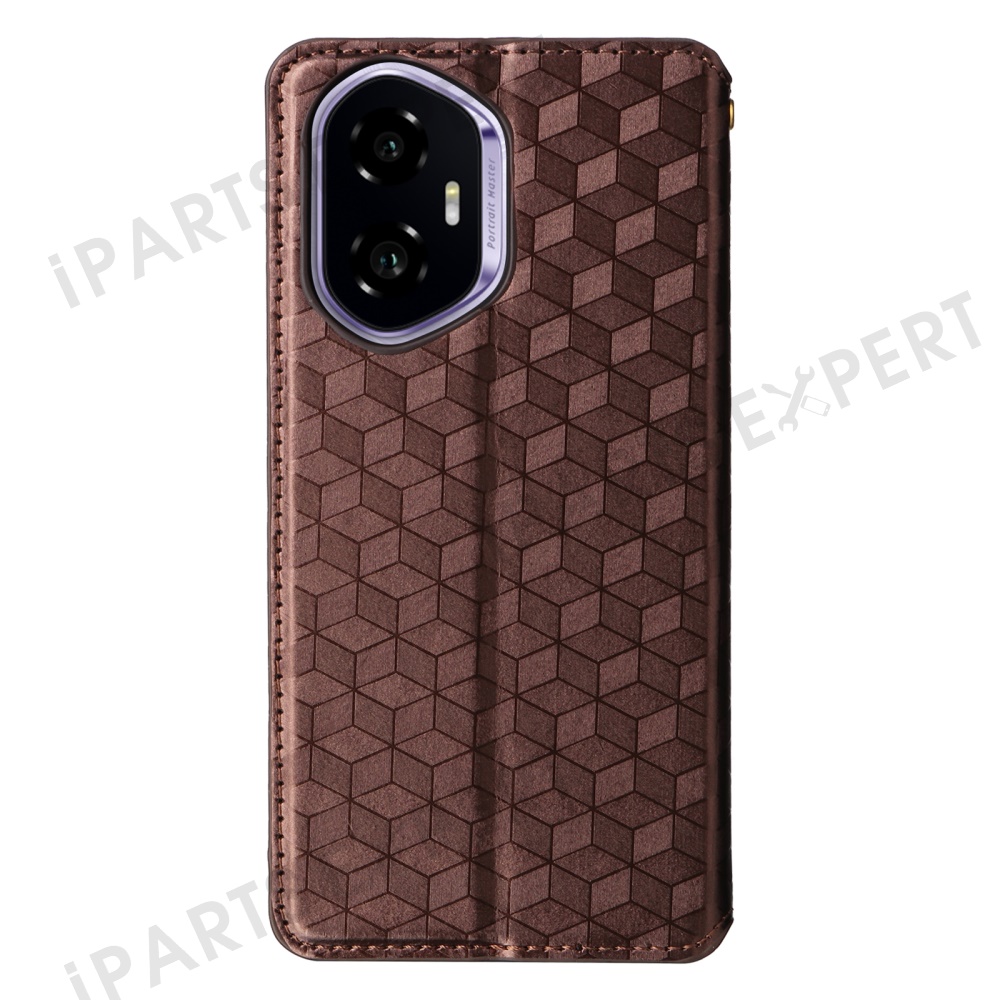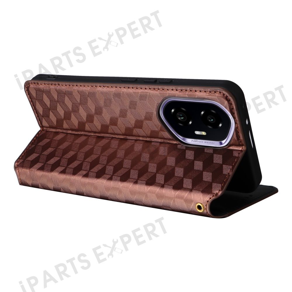 For Honor 300 Wallet Case Rhombus Imprinted Leather Phone Cover - Brown
