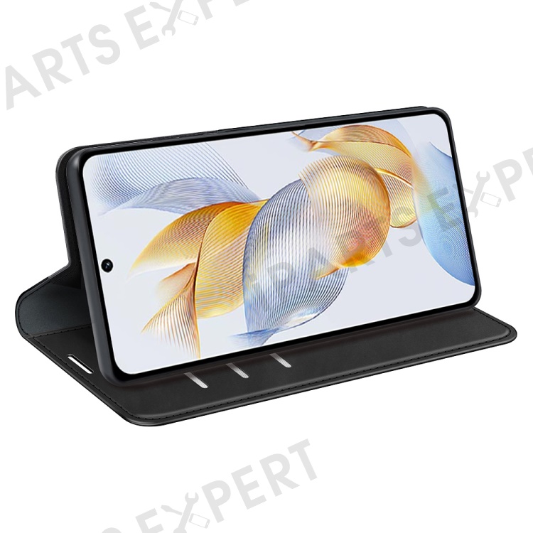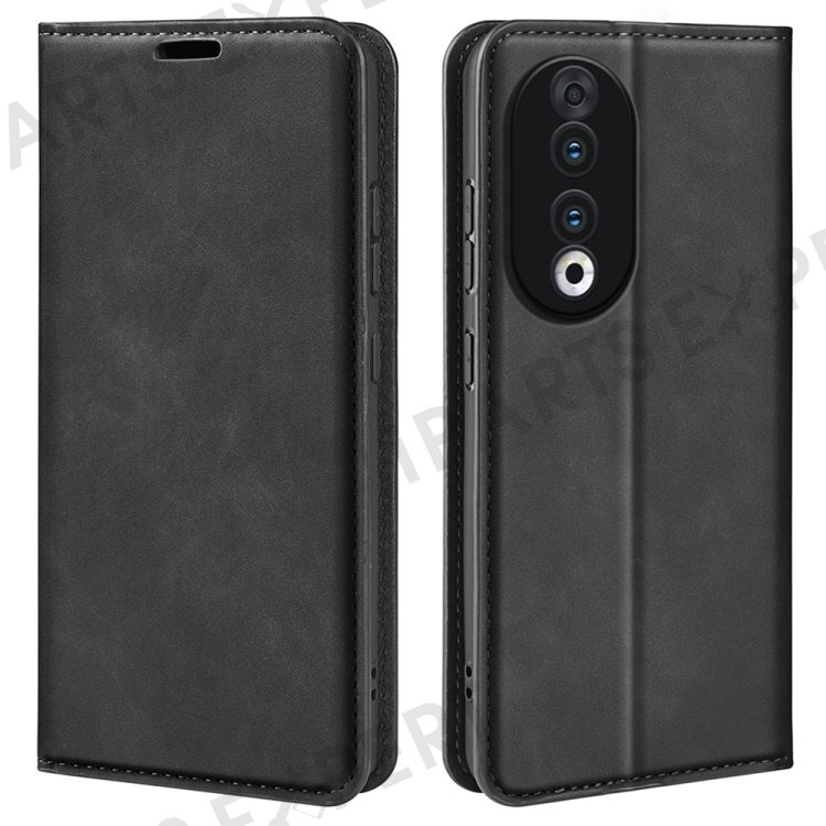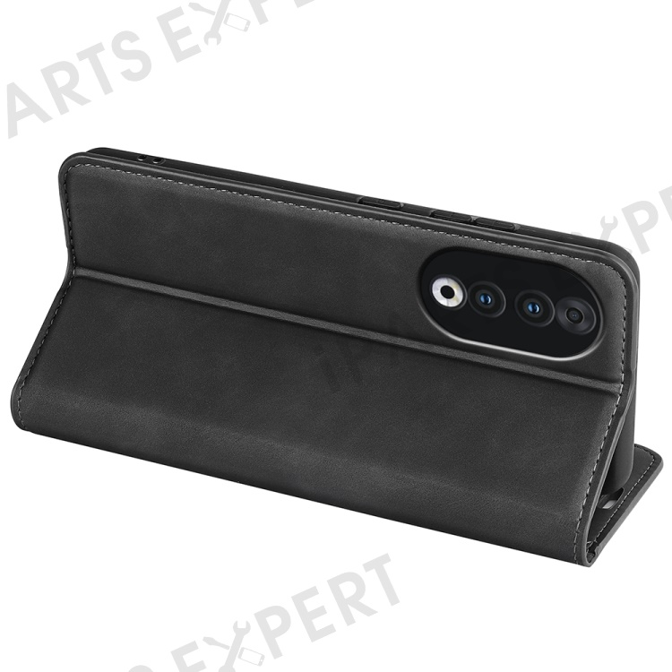 For Honor 90 Wallet Flip Cell Phone Case Skin-touch Stand Shockproof PU Leather Cover - Black
