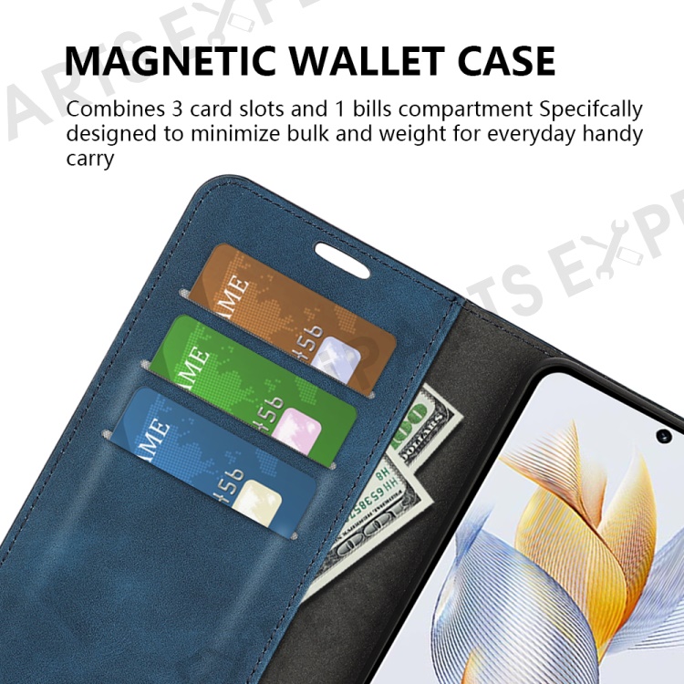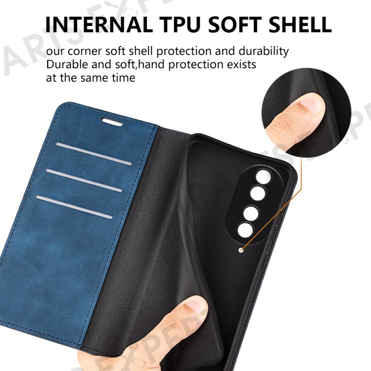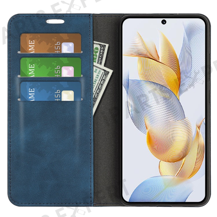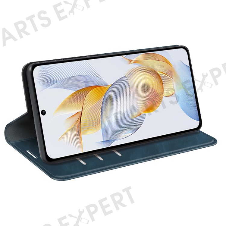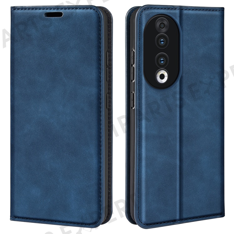 For Honor 90 Wallet Flip Cell Phone Case Skin-touch Stand Shockproof PU Leather Cover - Blue