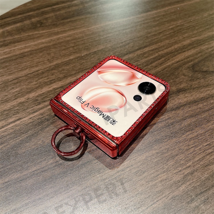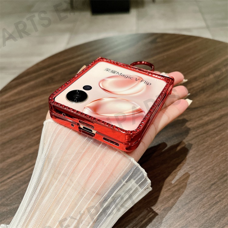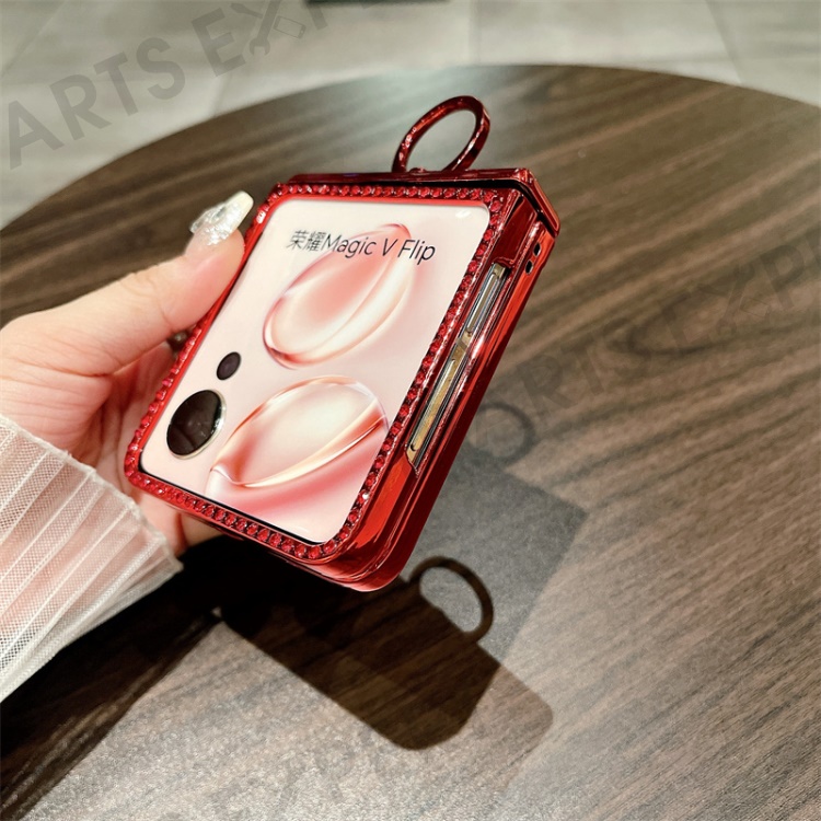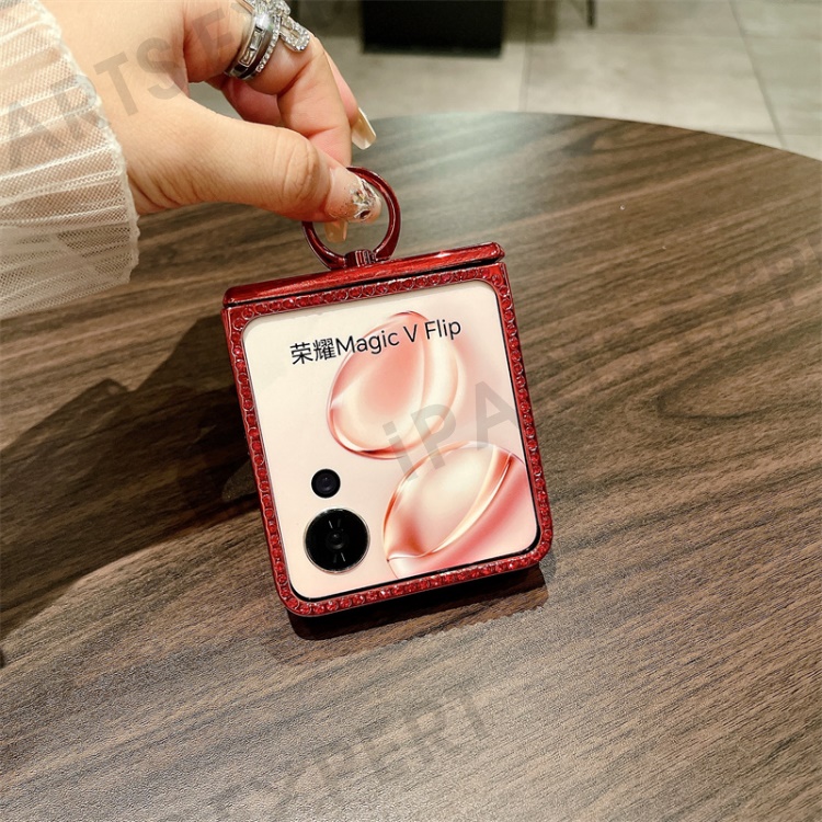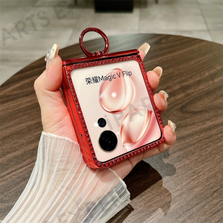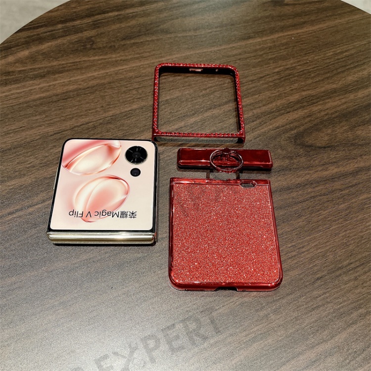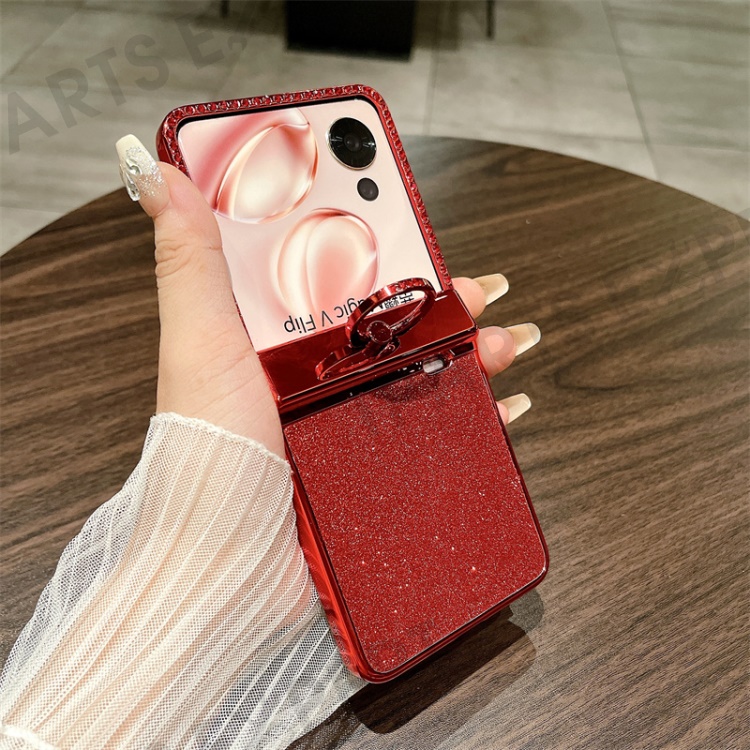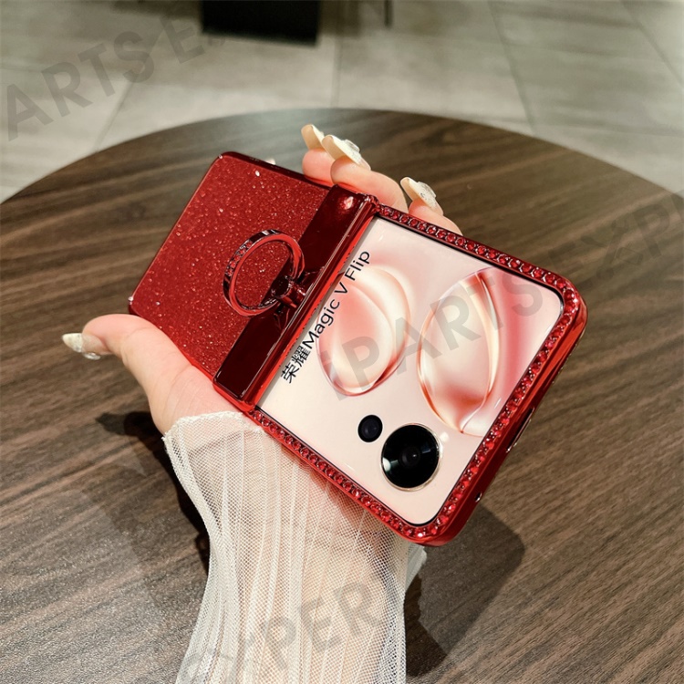 For Honor Magic V Flip 5G Case Sparkling Glitter Ring Holder Hinge PC Phone Cover