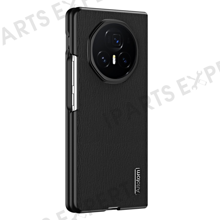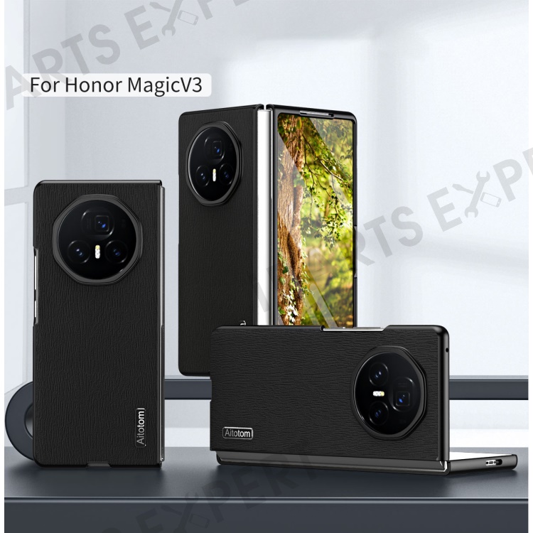 For Honor Magic V3 5G Phone Case Wood Texture PU Leather+PC+TPU Back Cover - Black