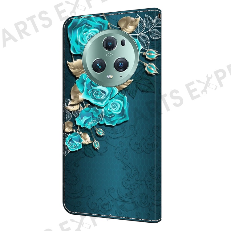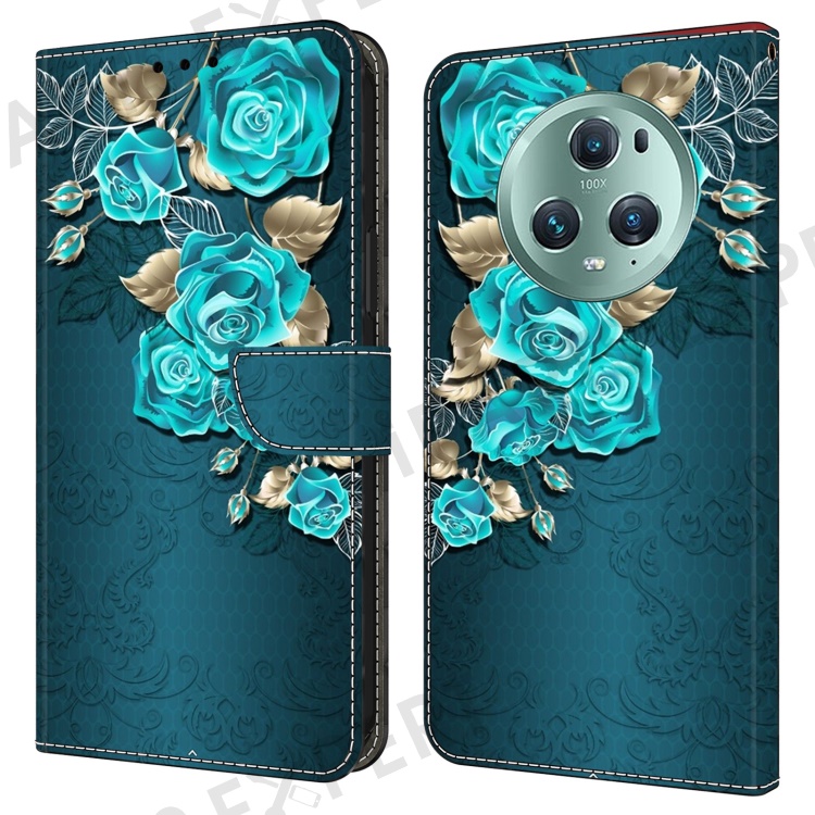 For Honor Magic5 Pro Leather Phone Case Wallet 3D Pattern All Inclusive Cover - Blue Rose