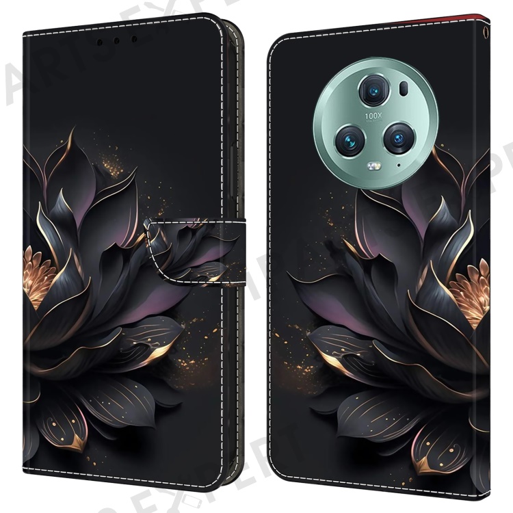 For Honor Magic5 Pro Leather Phone Case Wallet 3D Pattern All Inclusive Cover - Purple Lotus