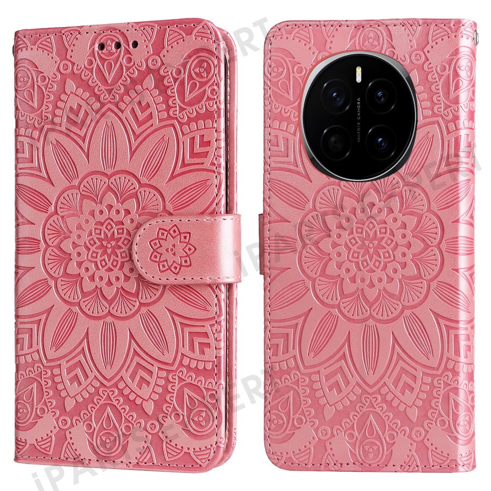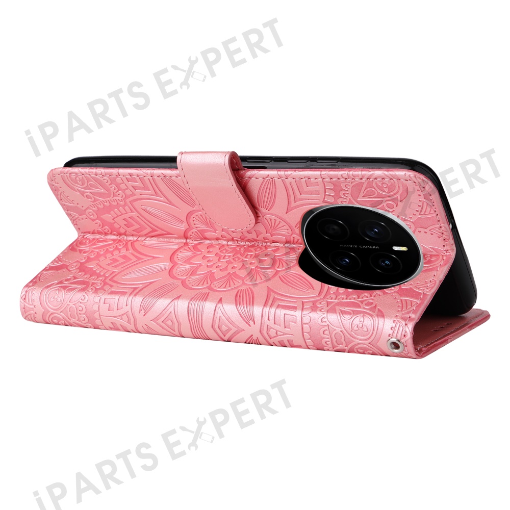 For Honor Magic7 5G Case Sunflower Imprint Leather Wallet Phone Cover - Pink