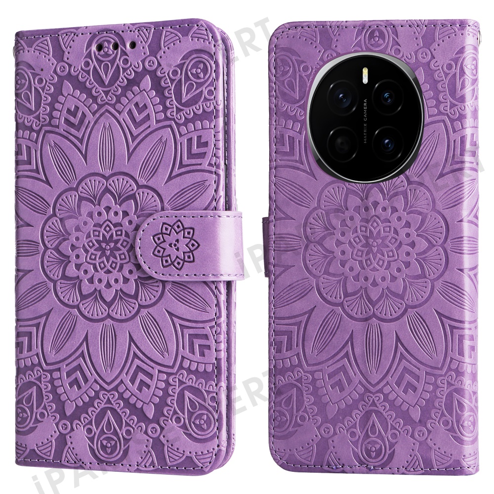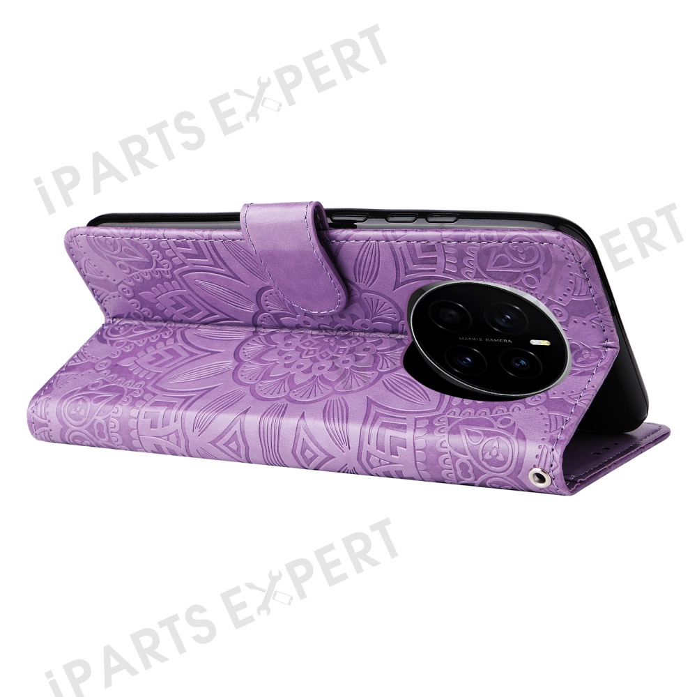 For Honor Magic7 5G Case Sunflower Imprint Leather Wallet Phone Cover - Purple