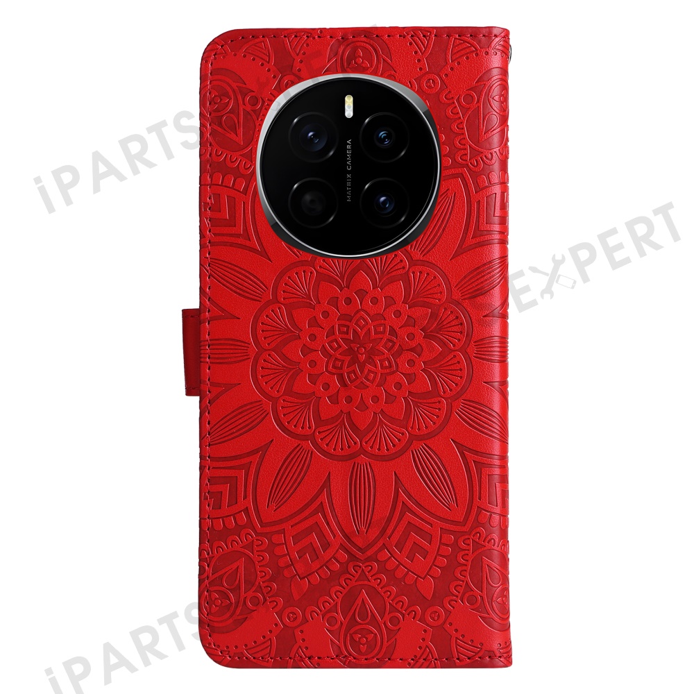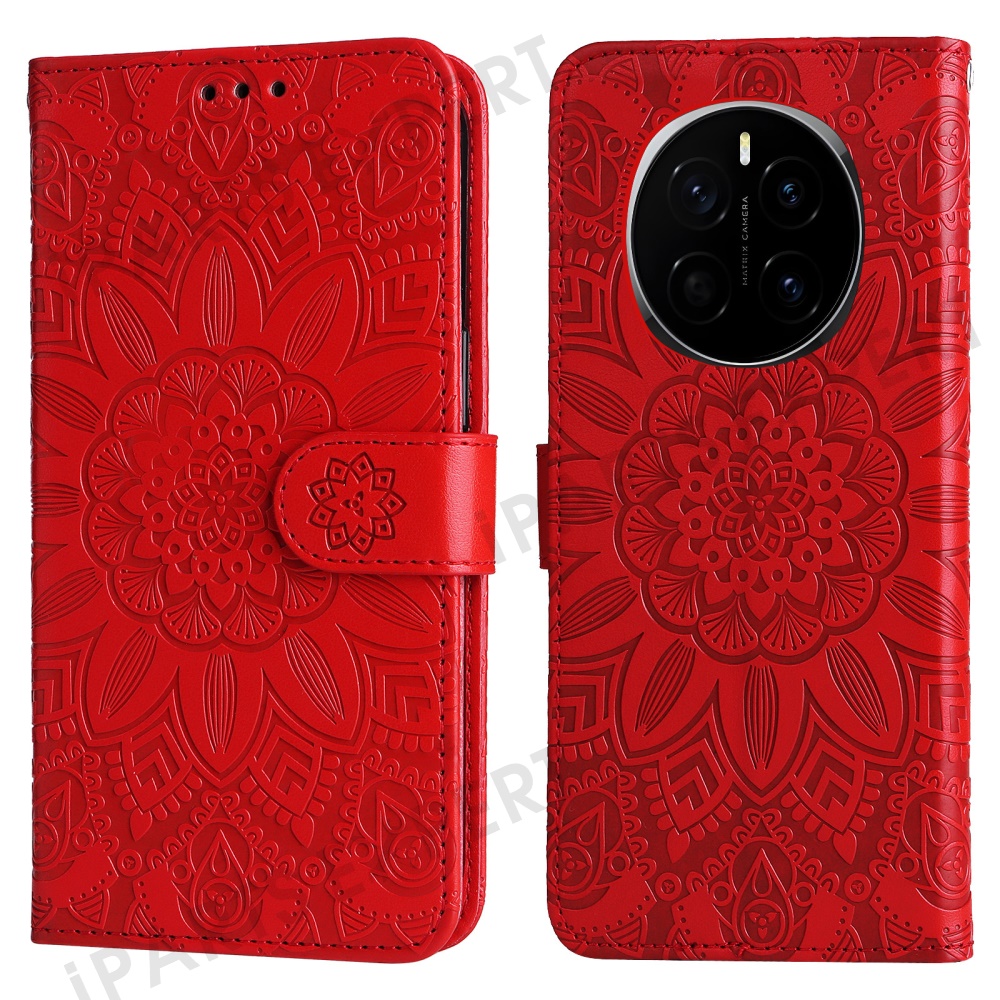 For Honor Magic7 5G Case Sunflower Imprint Leather Wallet Phone Cover - Red