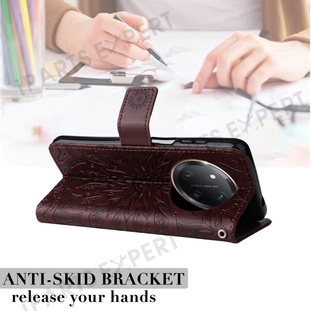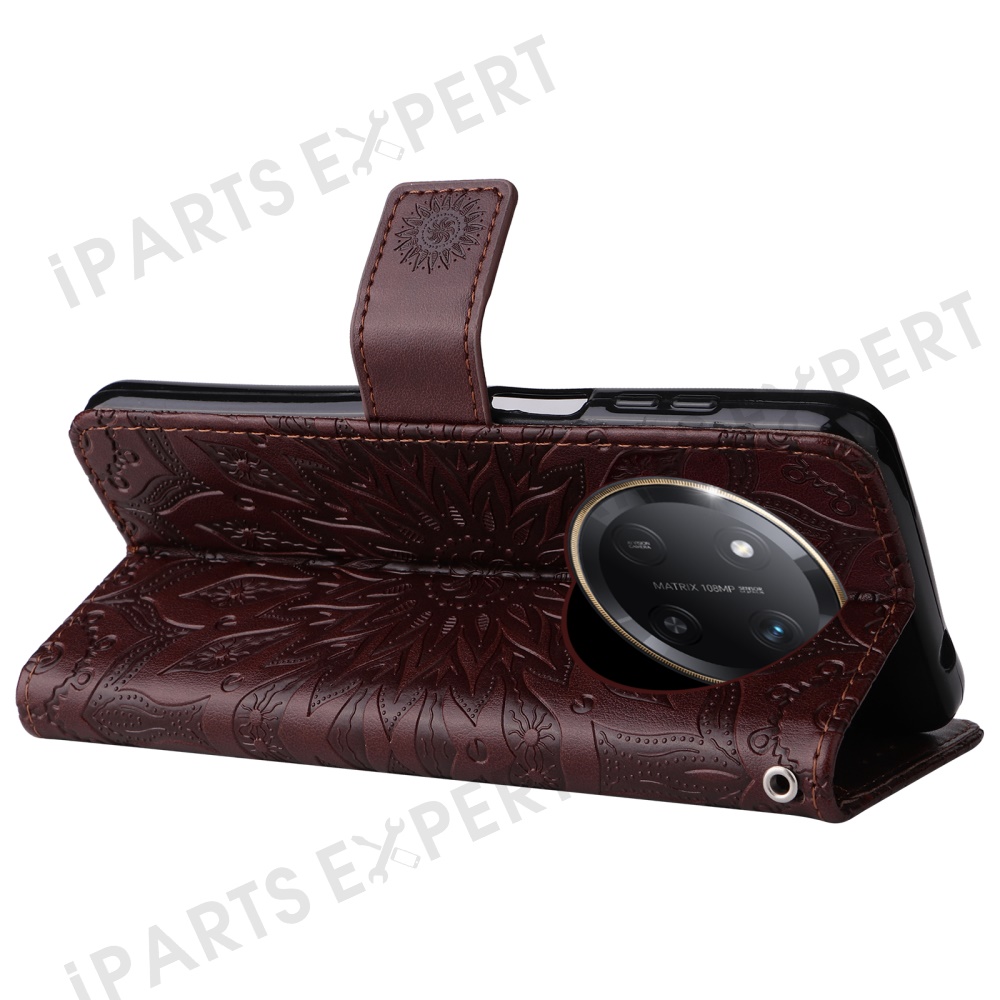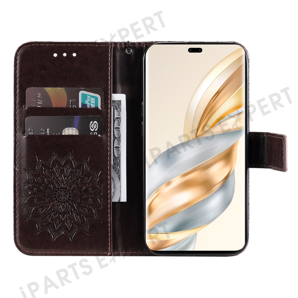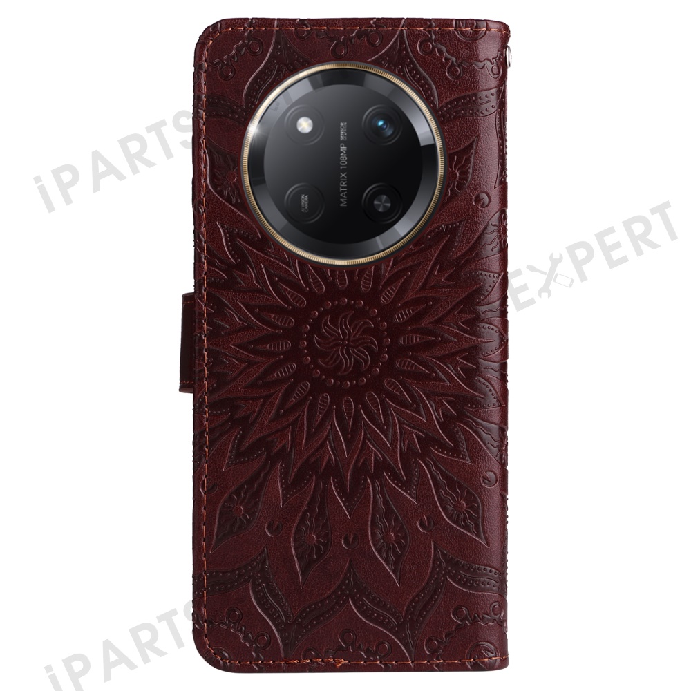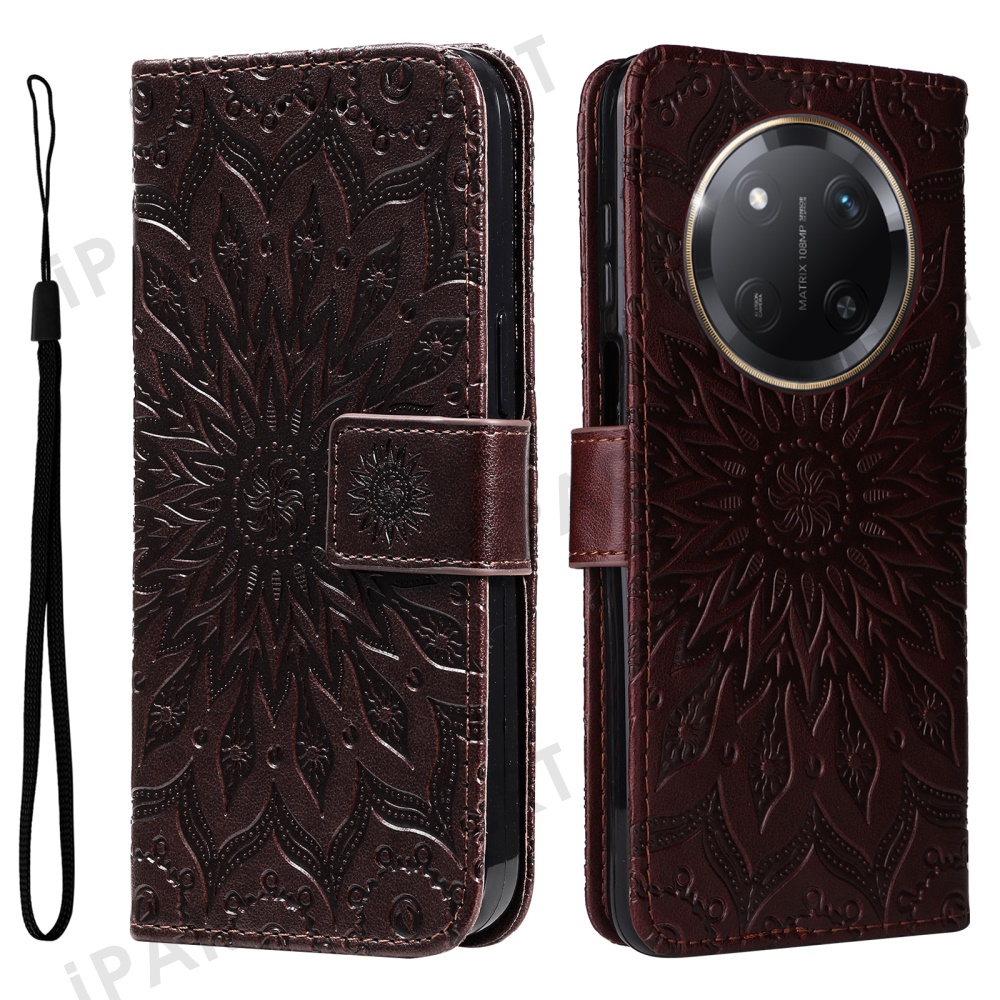 For Honor Magic7 Lite 5G / X9c 5G / X60 Pro 5G Phone Case Sunflower Imprinted Leather Wallet Stand Cover with Strap - Brown