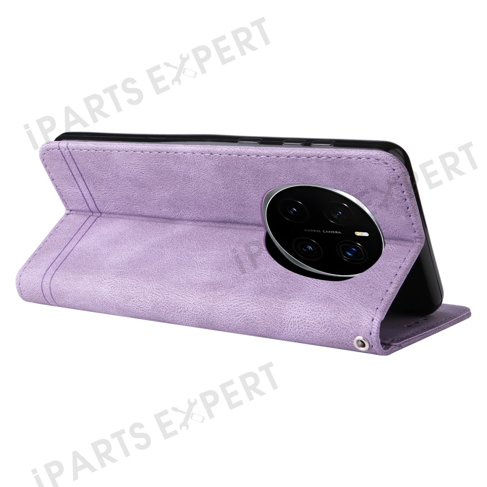 For Honor Magic7 Pro 5G Leather Wallet Cases Skin Touch Phone Cover Stand with Strap - Purple