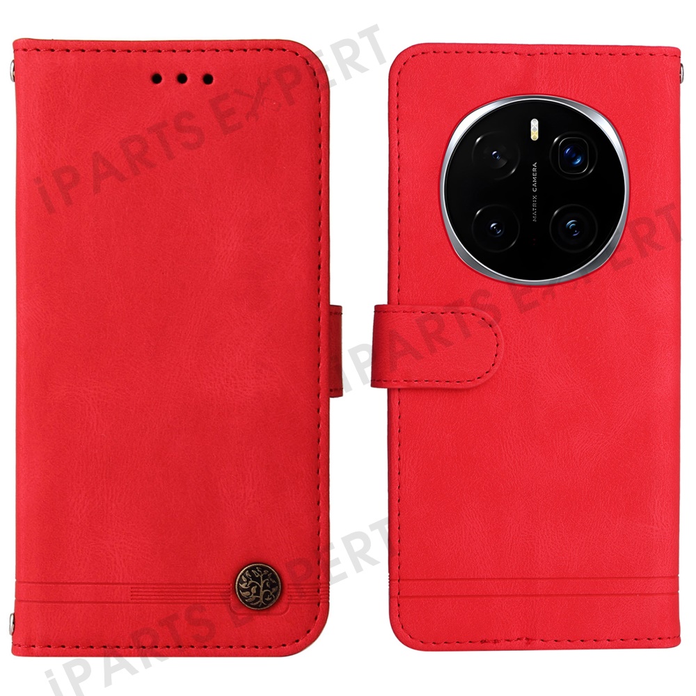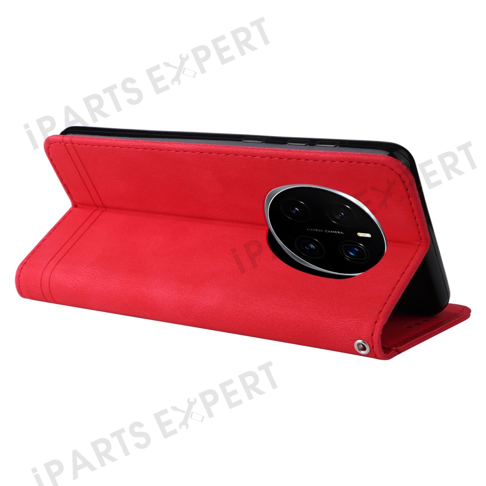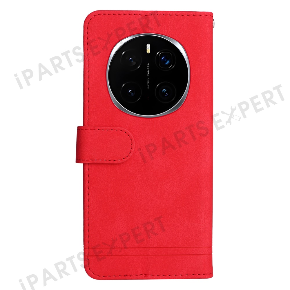 For Honor Magic7 Pro 5G Leather Wallet Cases Skin Touch Phone Cover Stand with Strap - Red