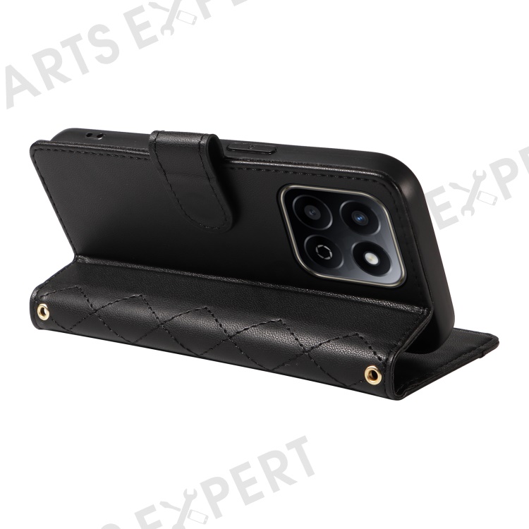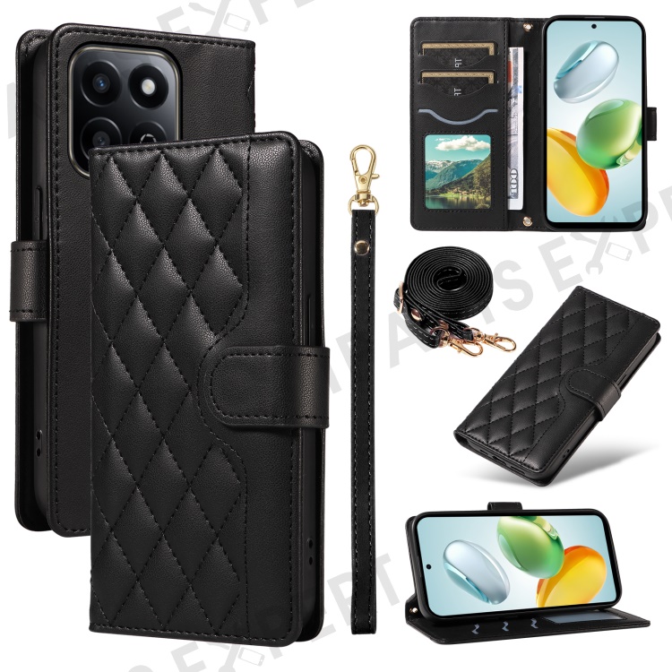 For Honor Play 60 Plus 5G / Play 9T / X7c 4G / 200 Smart 5G Wallet Case Rhombus Leather Phone Cover - Black