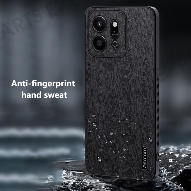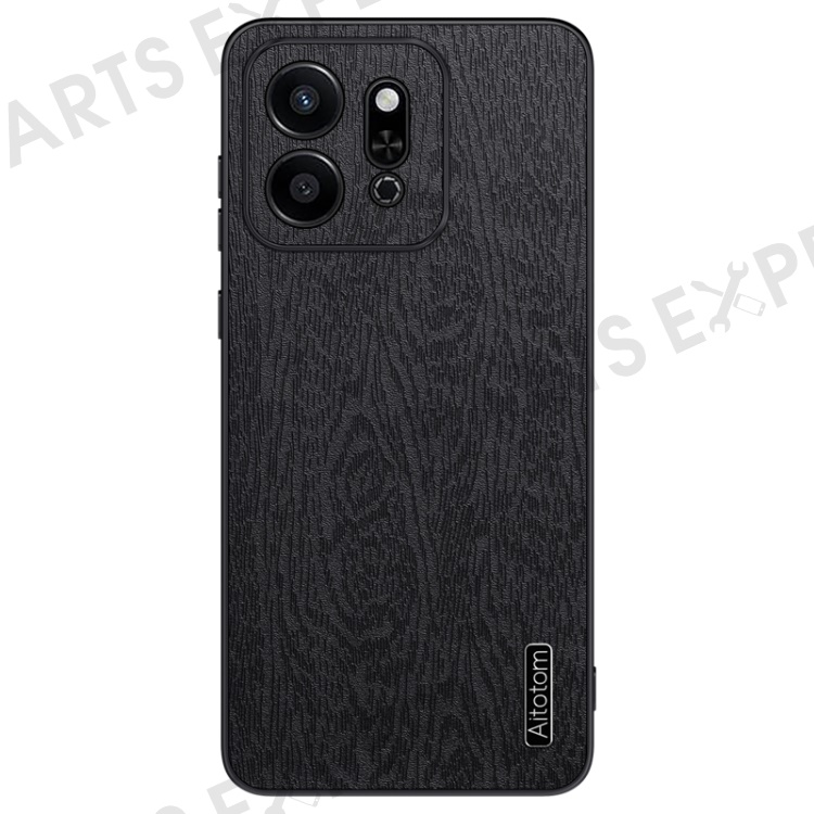 For Honor Play 9T Case Wood Texture PU Leather Coated PC+TPU Phone Cover - Black
