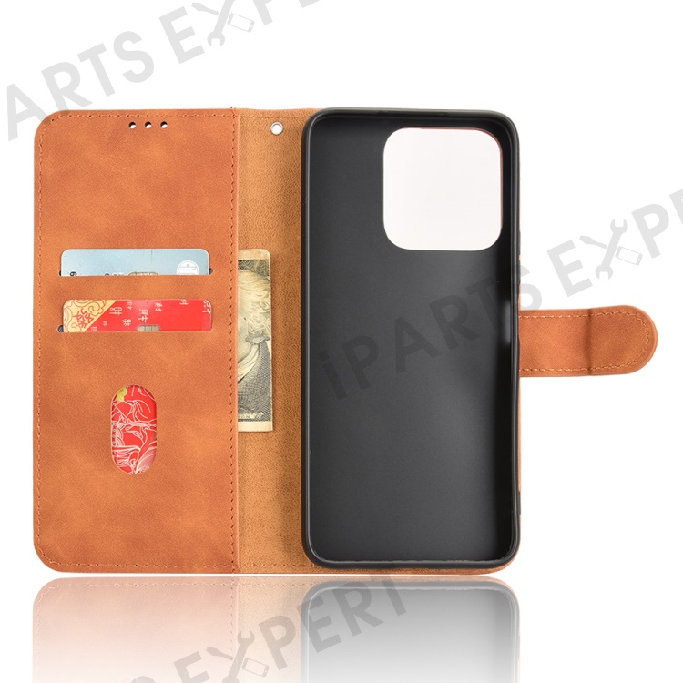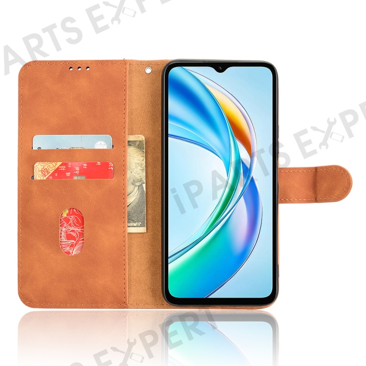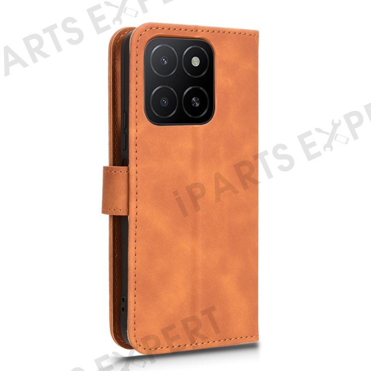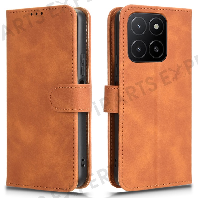 For Honor X5b Leather Case Skin-Feel Anti-Drop Wallet Flip Phone Cover - Brown