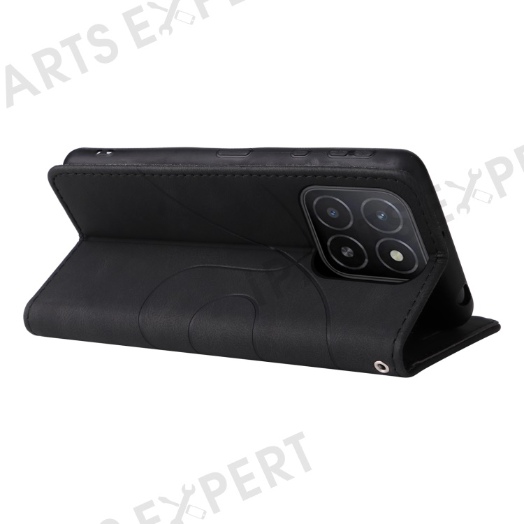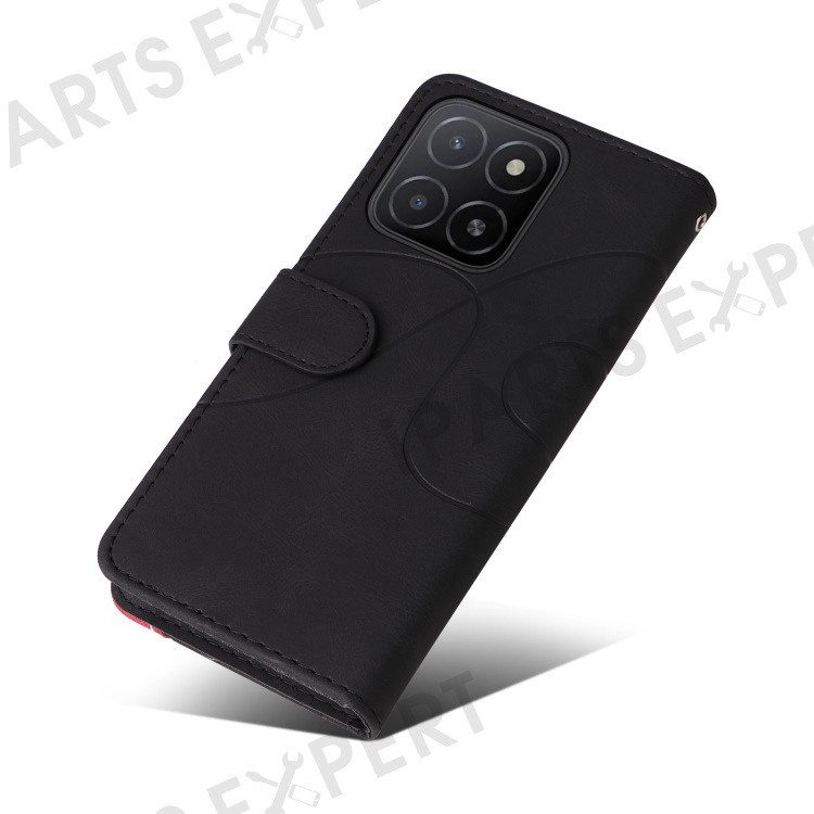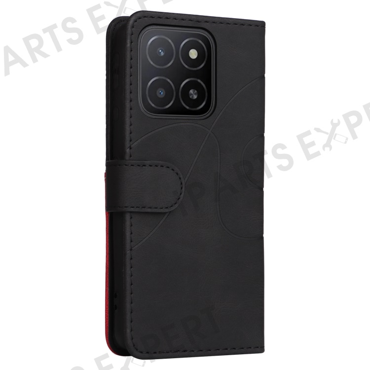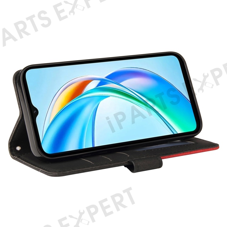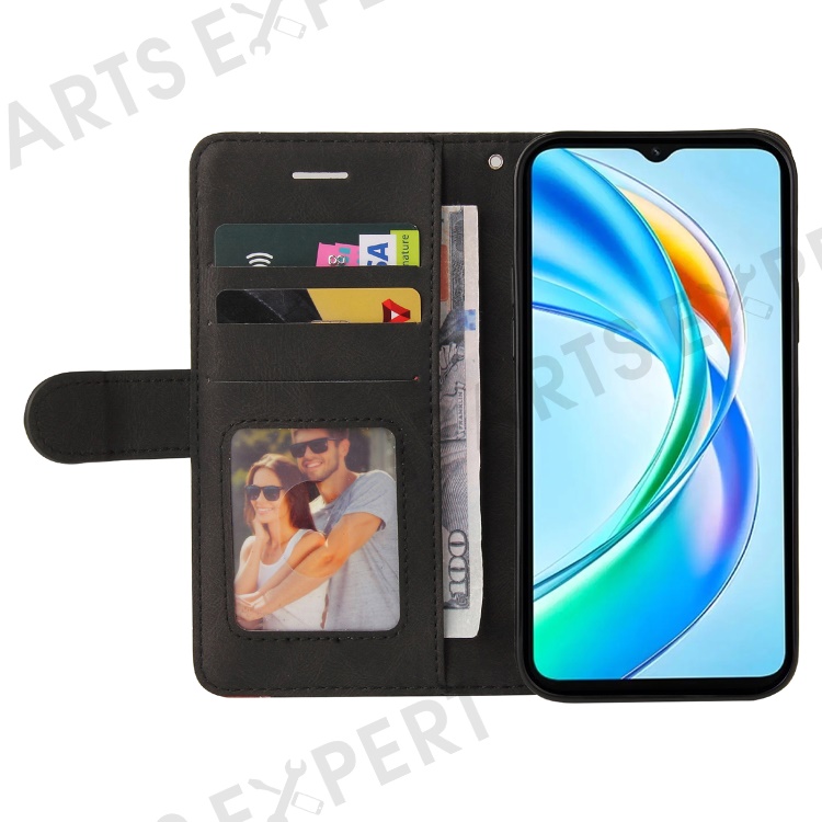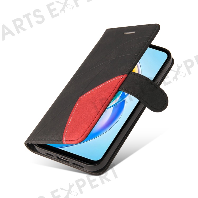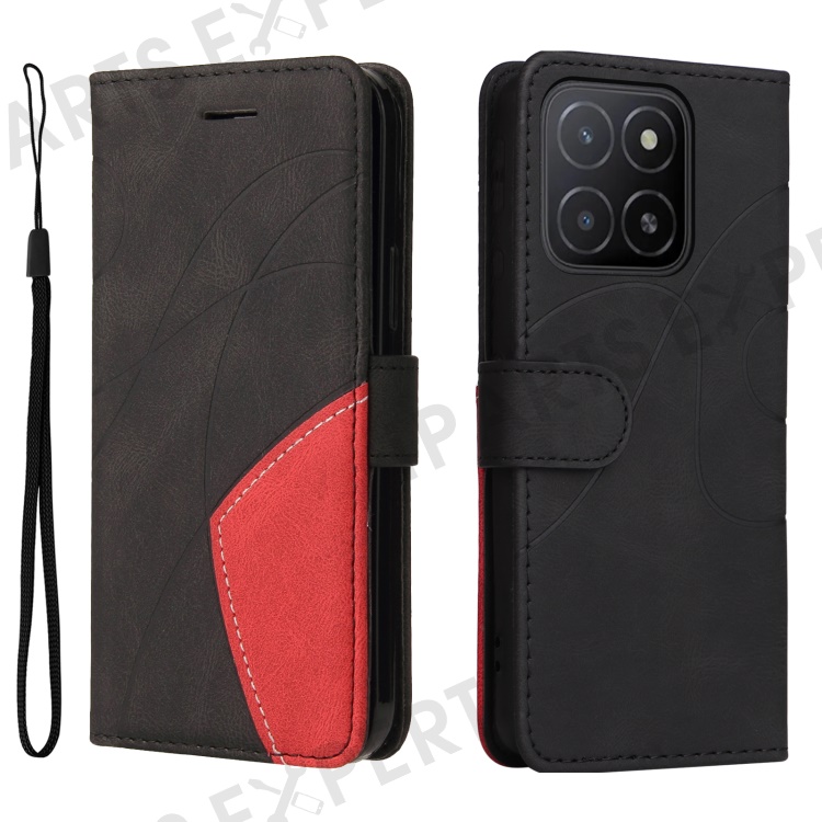 For Honor X5b / X5b Plus Leather Case Wallet Stand Color Splicing Phone Cover - Black