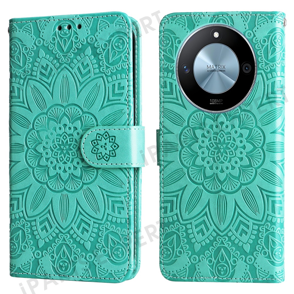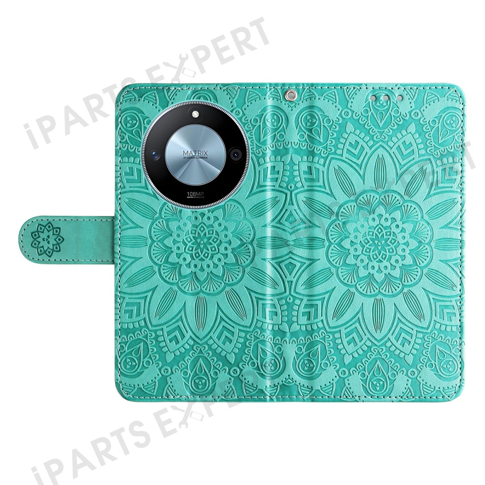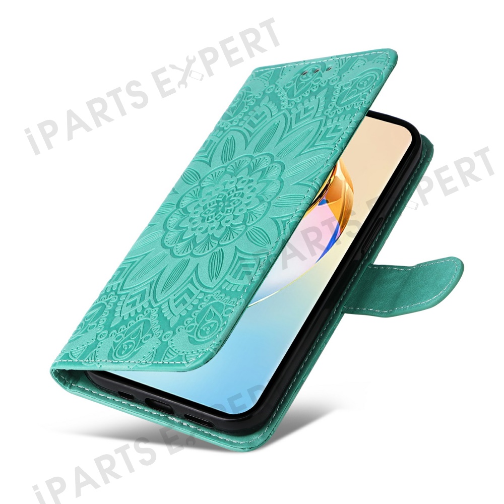 For Honor X60 5G Case Sunflower Imprint Leather Wallet Phone Cover - Green