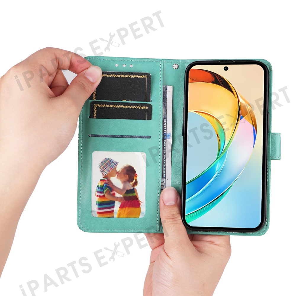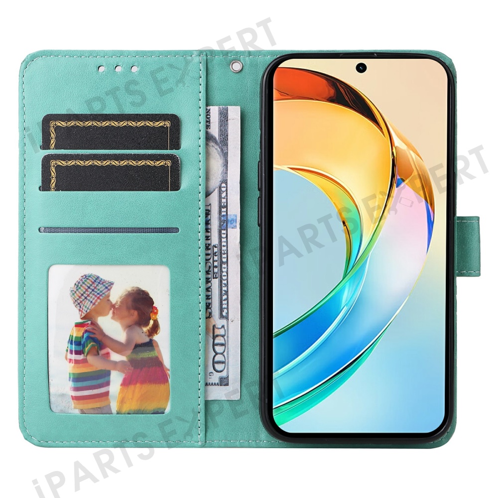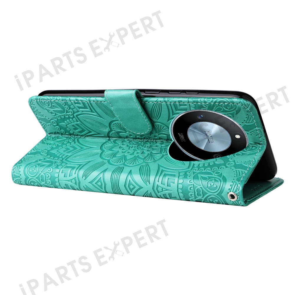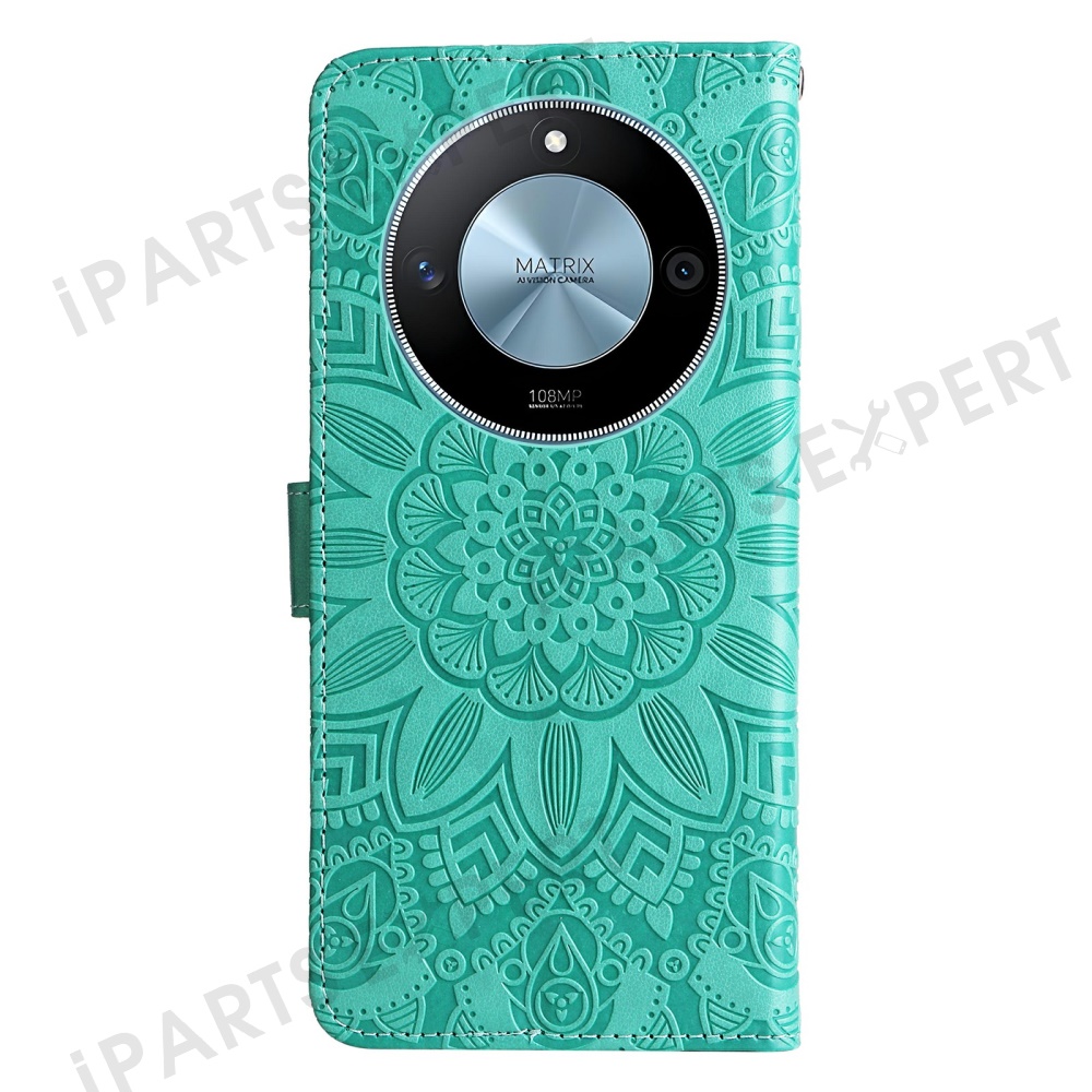 For Honor X60 5G Case Sunflower Imprint Leather Wallet Phone Cover - Green