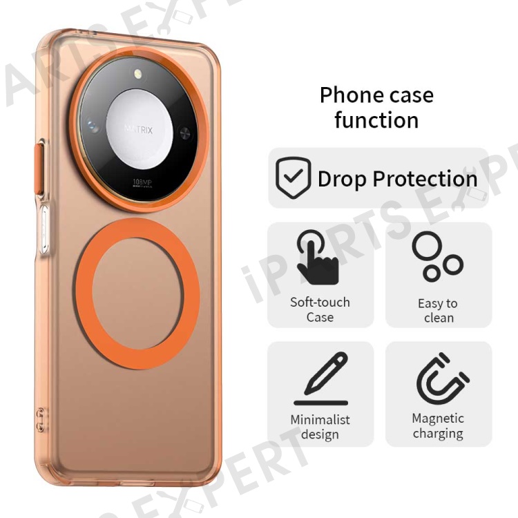 For Honor X60 5G Magnetic Case PC+TPU+PET Anti-Drop Phone Cover - Orange