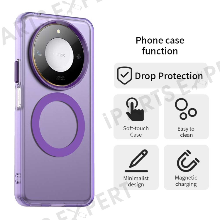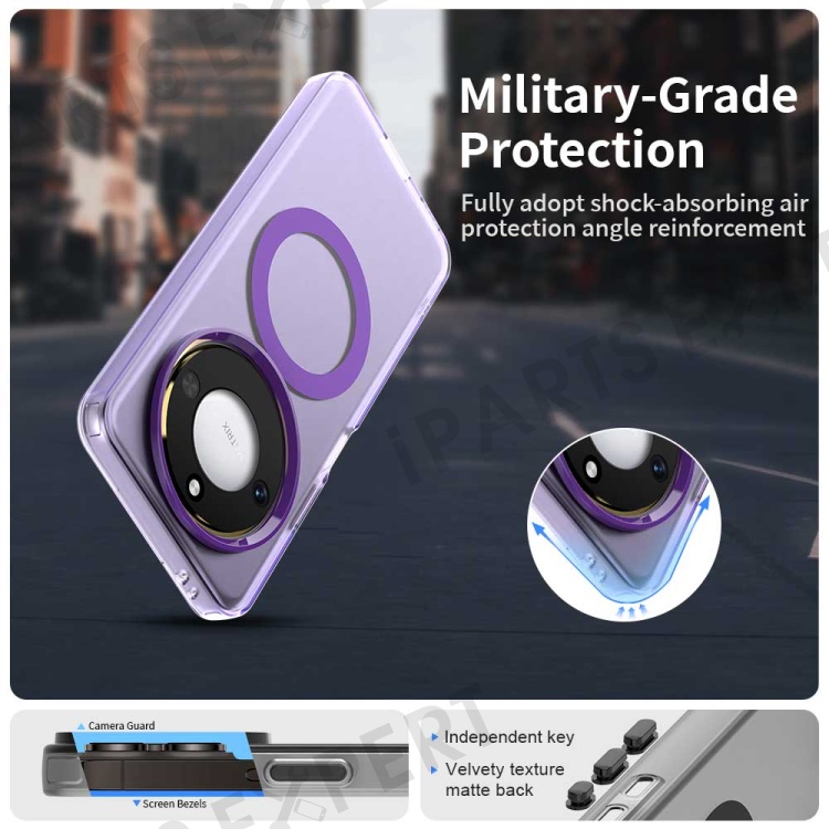 For Honor X60 5G Magnetic Case PC+TPU+PET Anti-Drop Phone Cover - Purple