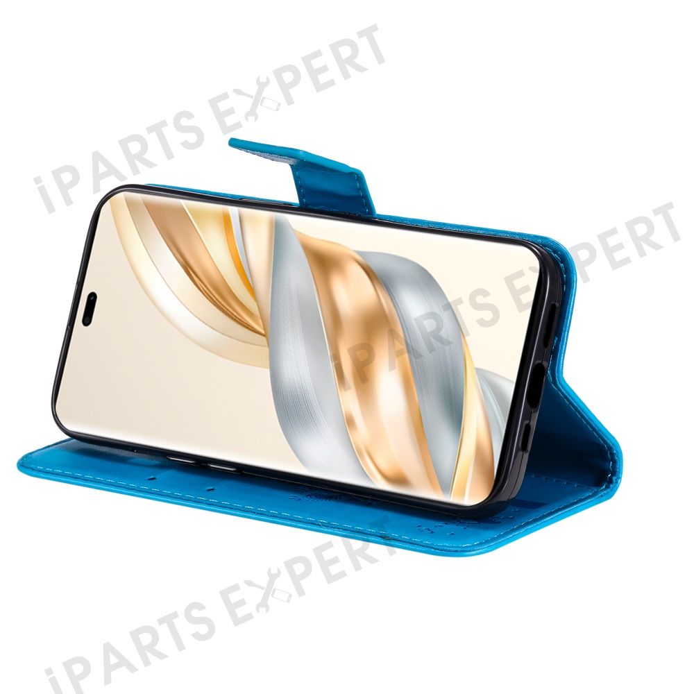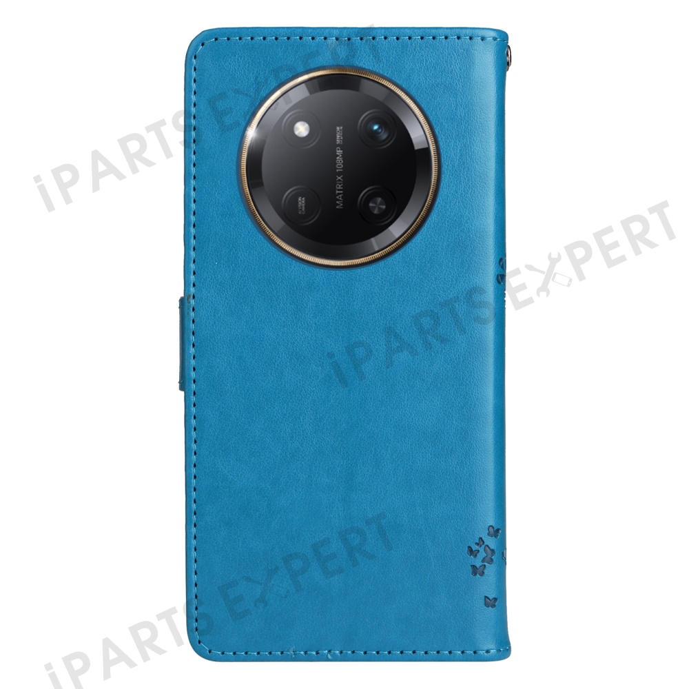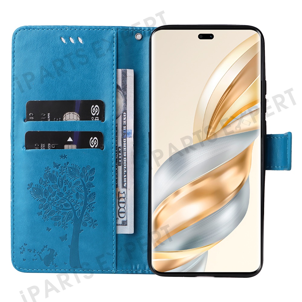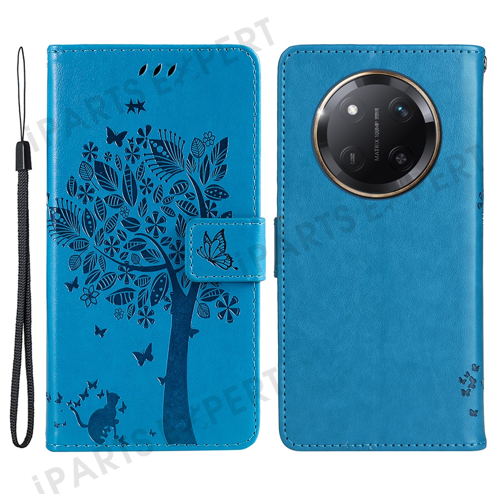 For Honor X60 Pro 5G / Magic7 Lite 5G / X9c 5G Phone Case with Stand Cat Tree Pattern Leather Wallet Mobile Cover - Blue