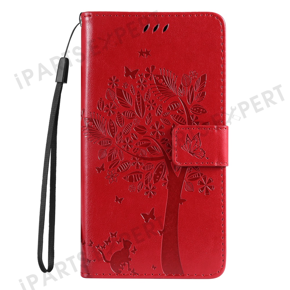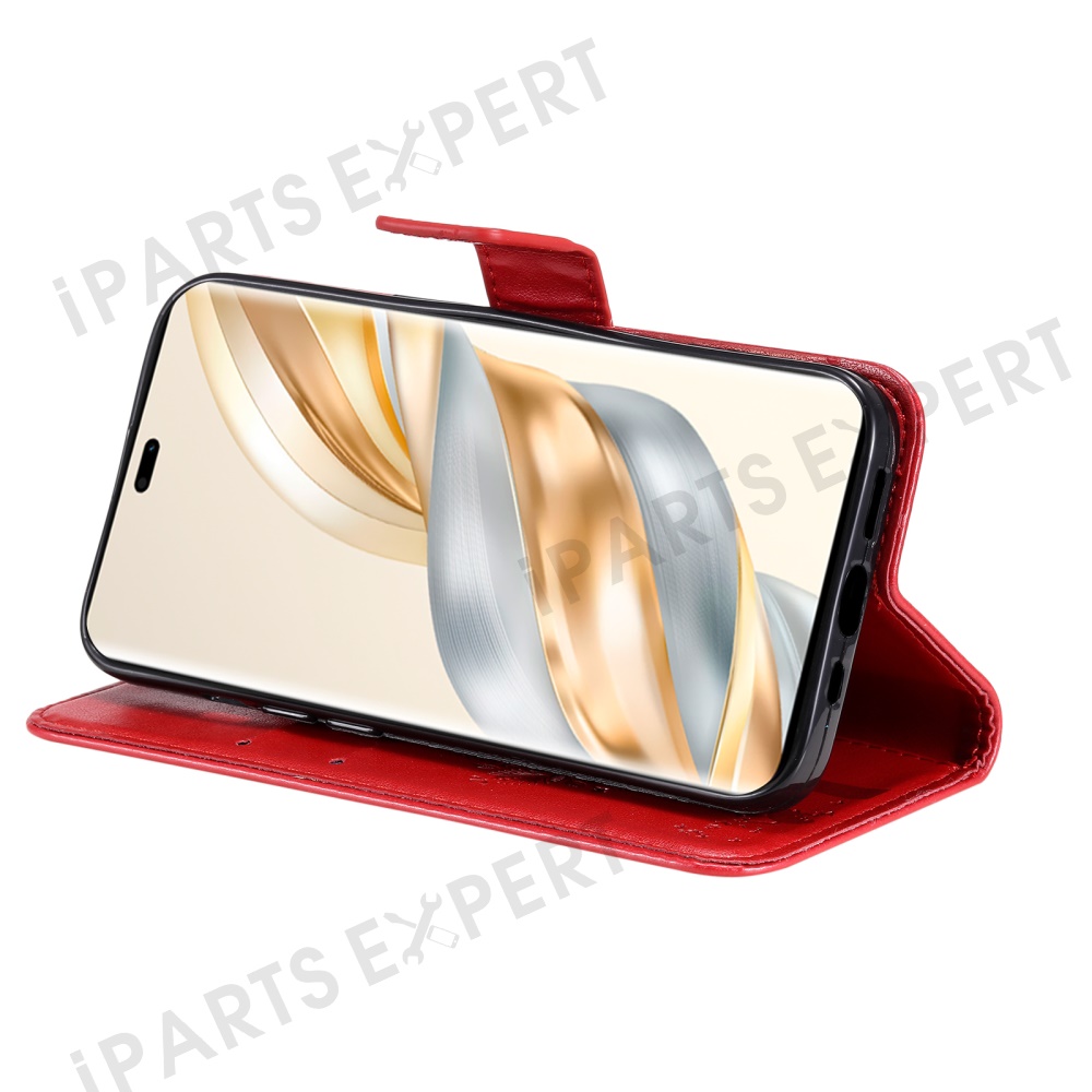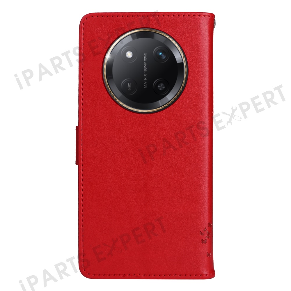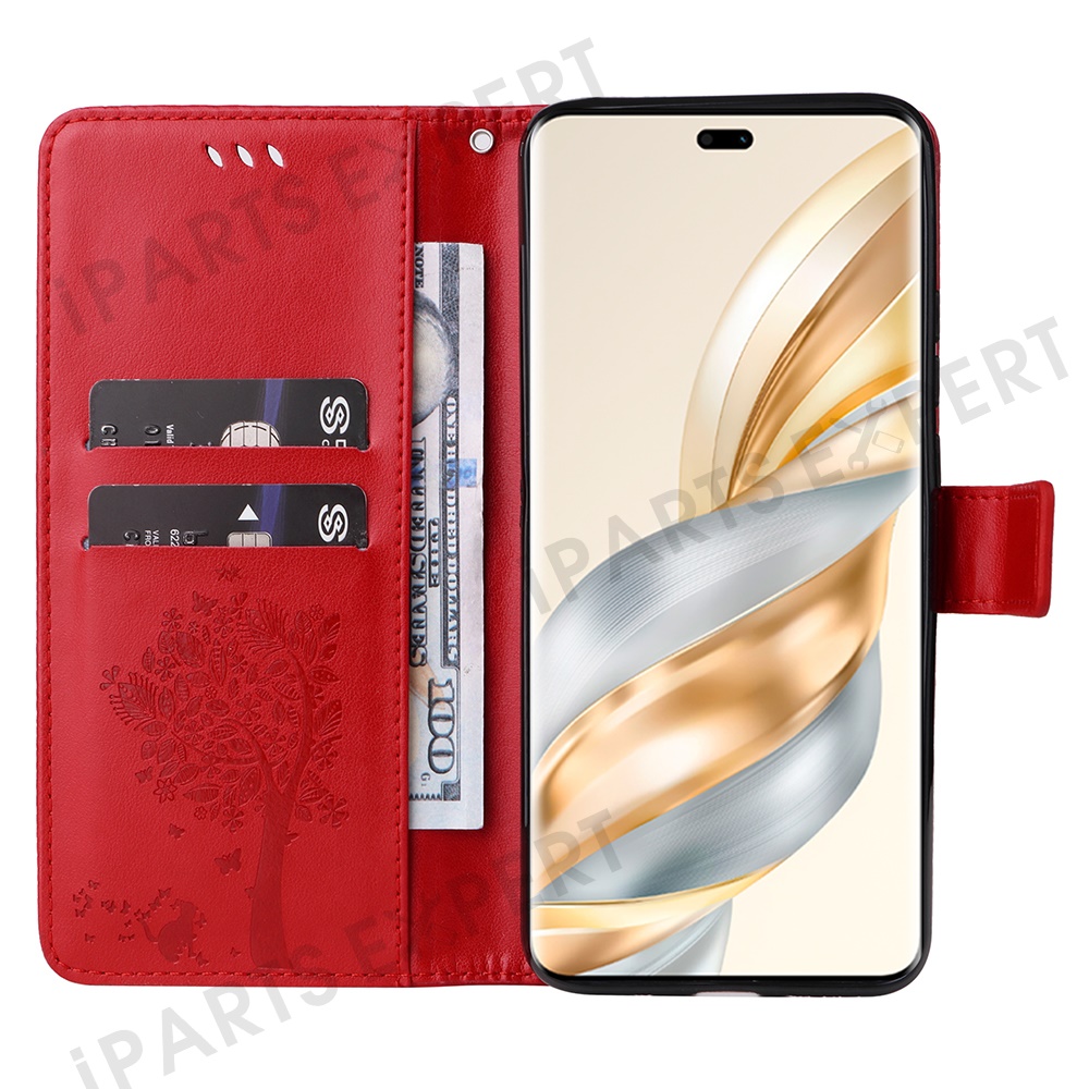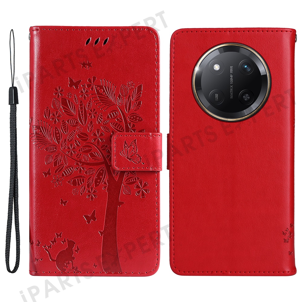 For Honor X60 Pro 5G / Magic7 Lite 5G / X9c 5G Phone Case with Stand Cat Tree Pattern Leather Wallet Mobile Cover - Red