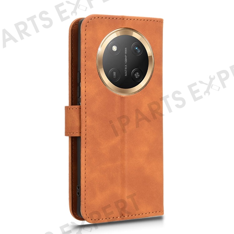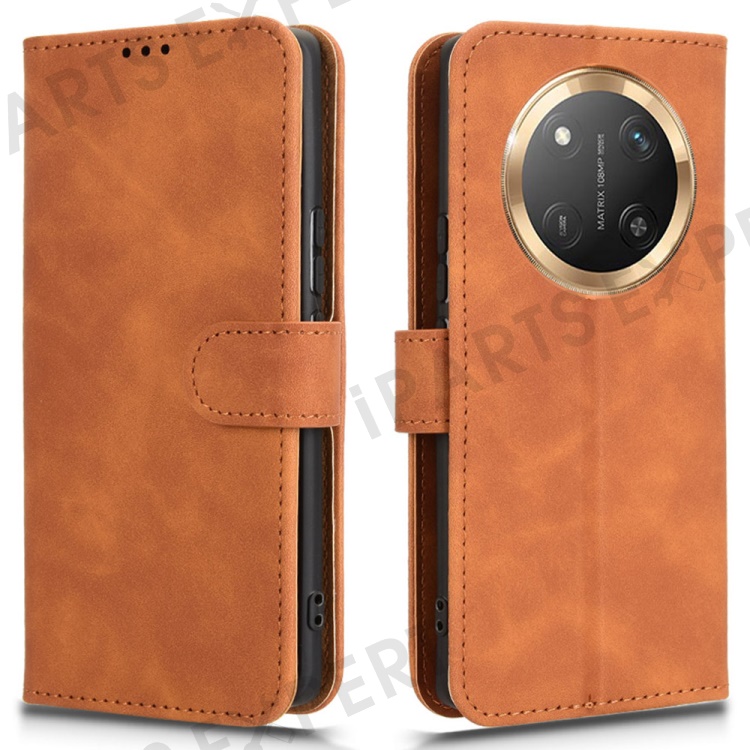 For Honor X60 Pro 5G / Magic7 Lite 5G / X9c 5G Leather Case Skin-Feel Anti-Drop Wallet Flip Phone Cover - Brown