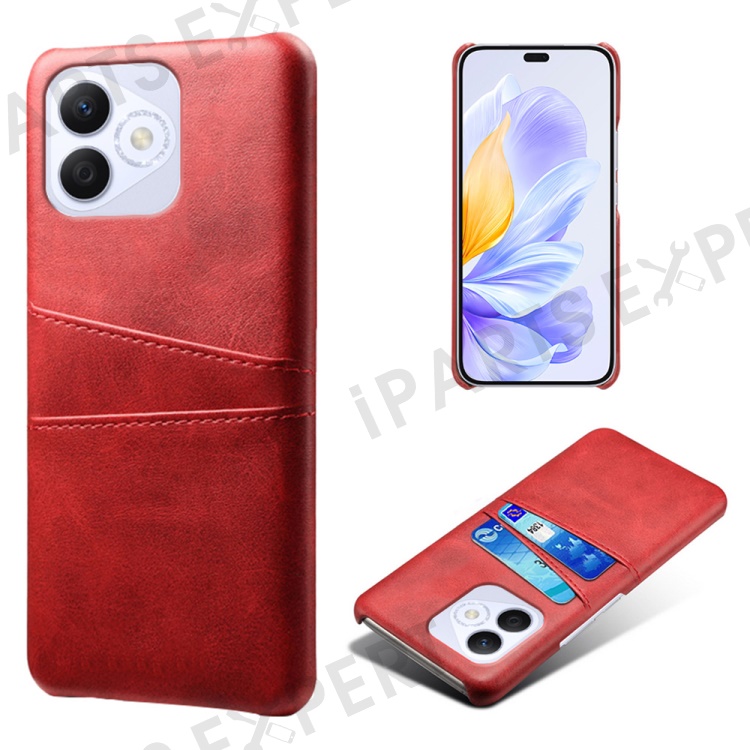 For Honor X60i 5G Case Dual Card Slots PU Leather + Hard PC Phone Cover - Red