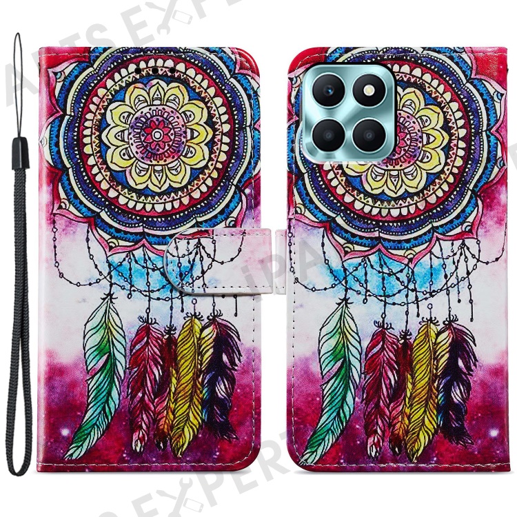For Honor X6a 4G Case PU Leather Pattern Folio Flip Stand Phone Cover - Dream Catcher