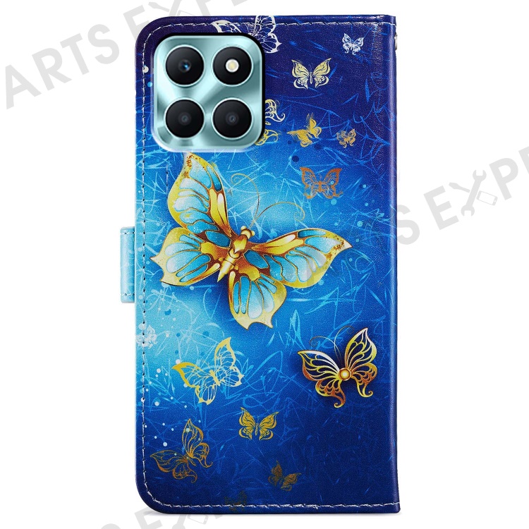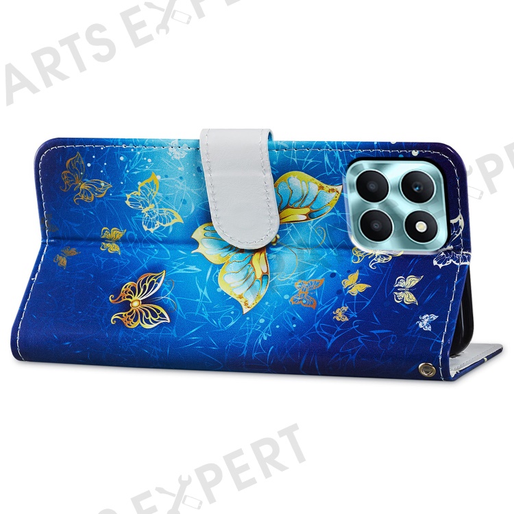 For Honor X6a 4G Case PU Leather Pattern Folio Flip Stand Phone Cover - Golden Butterfly