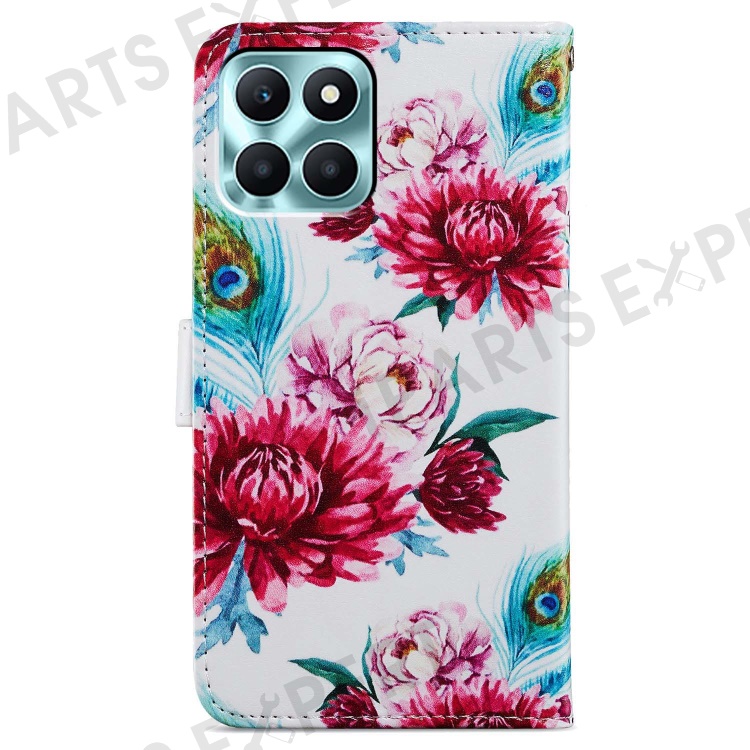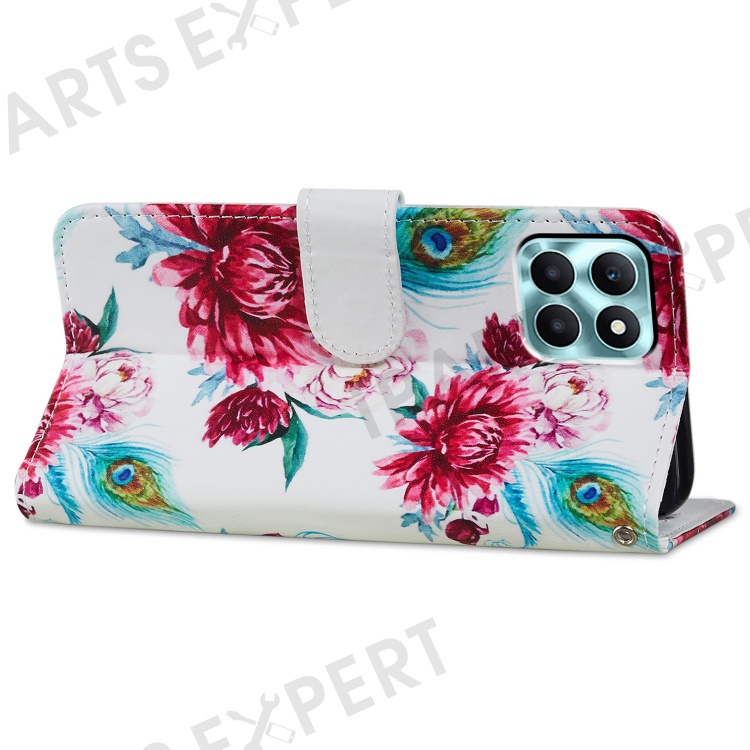 For Honor X6a 4G Case PU Leather Pattern Folio Flip Stand Phone Cover - Peacock Flower