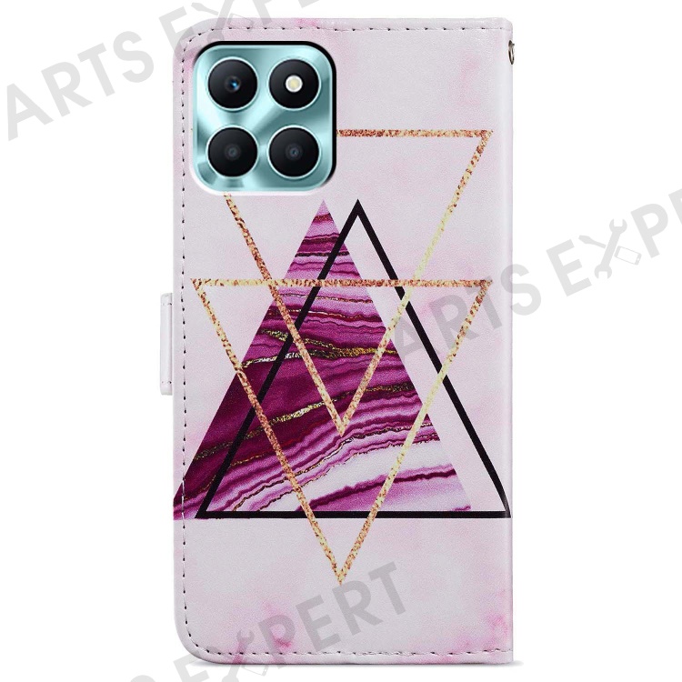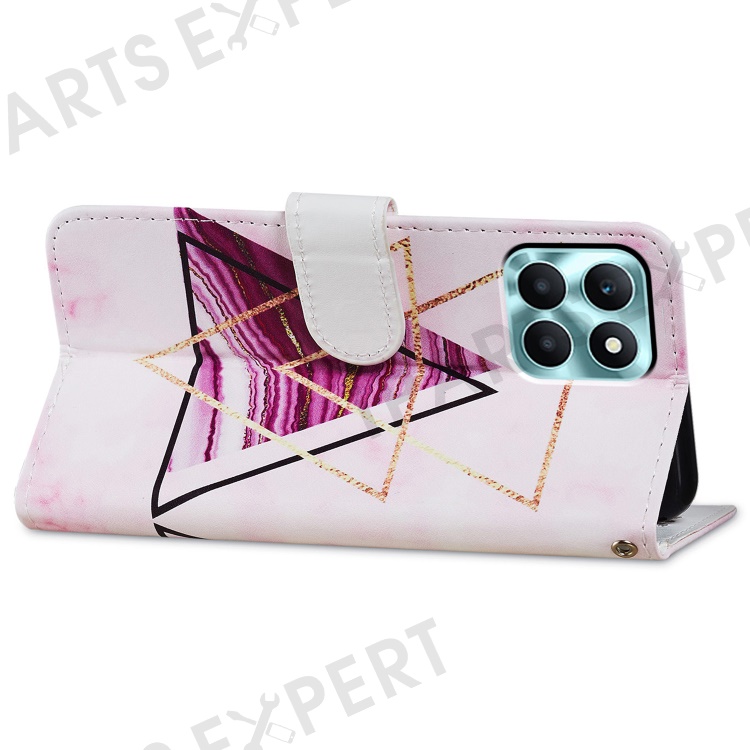 For Honor X6a 4G Case PU Leather Pattern Folio Flip Stand Phone Cover - Tri-color Marble