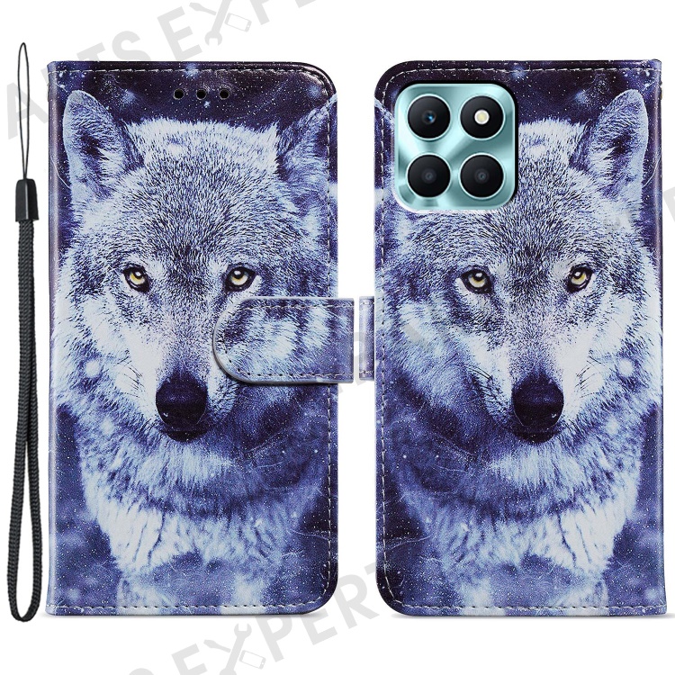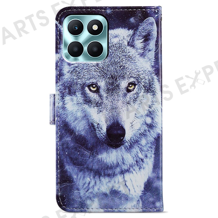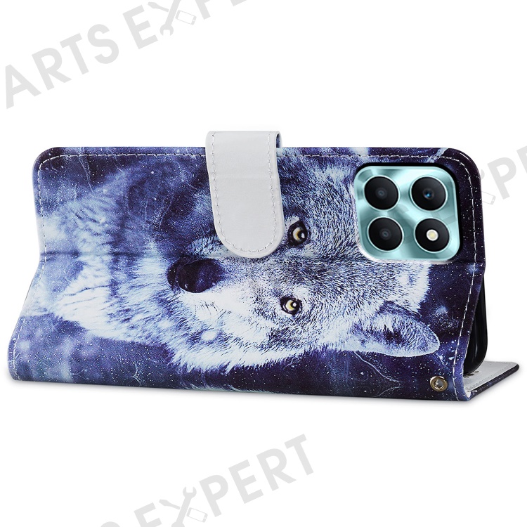 For Honor X6a 4G Case PU Leather Pattern Folio Flip Stand Phone Cover - White Wolf