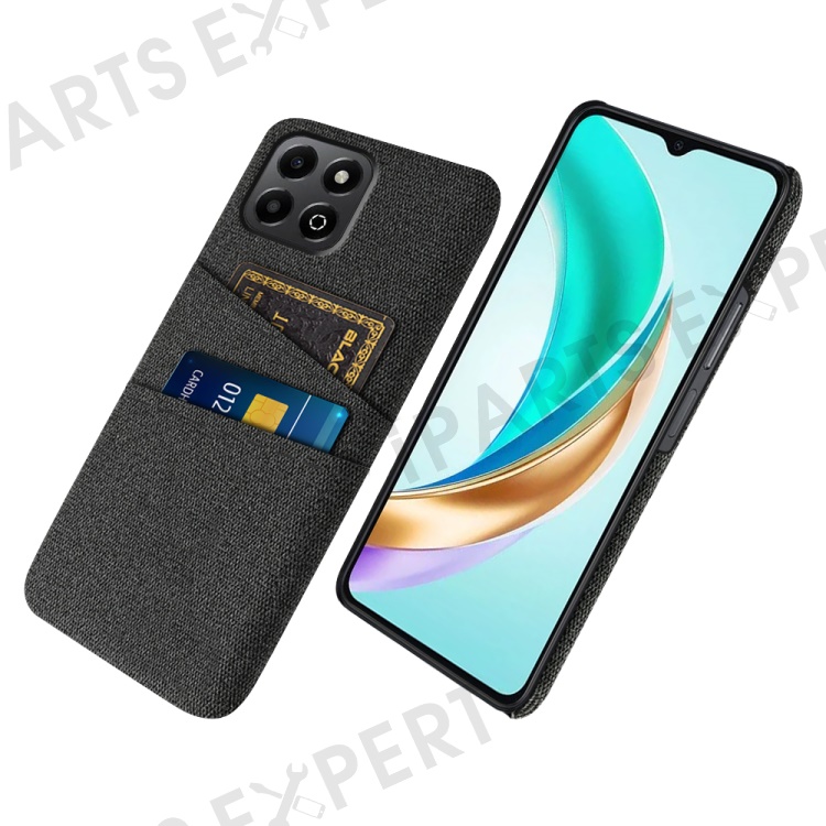 For Honor X6b 4G Case Cloth + Hard PC Phone Cover with Dual Card Slots - Black