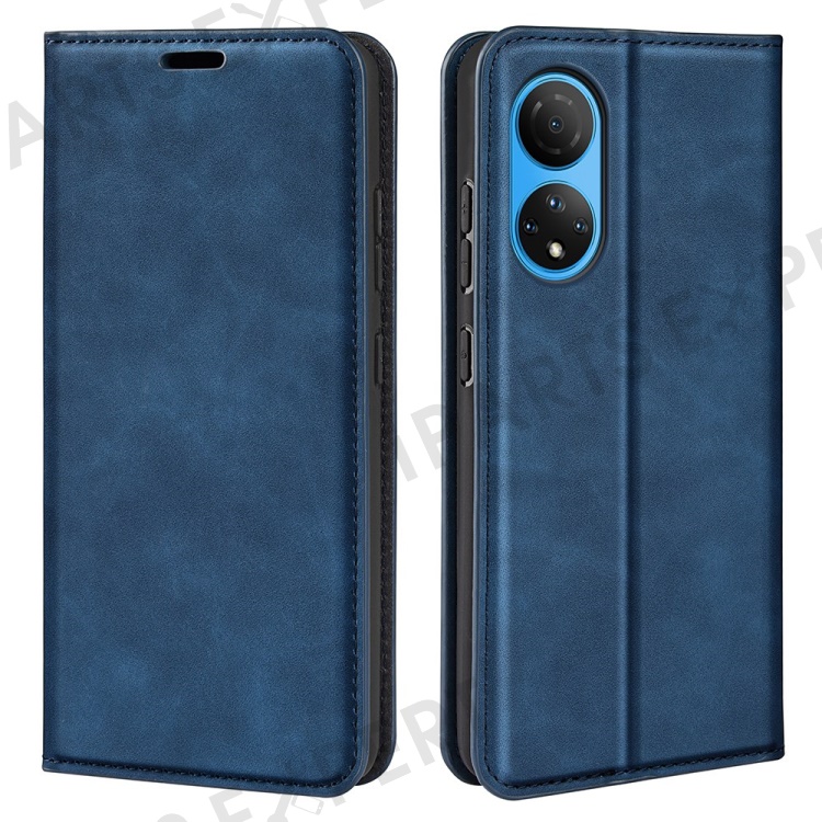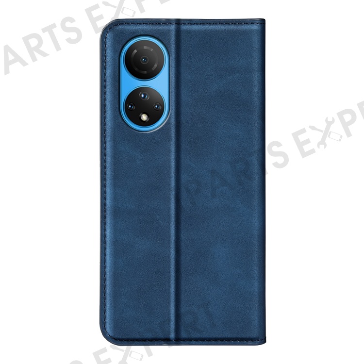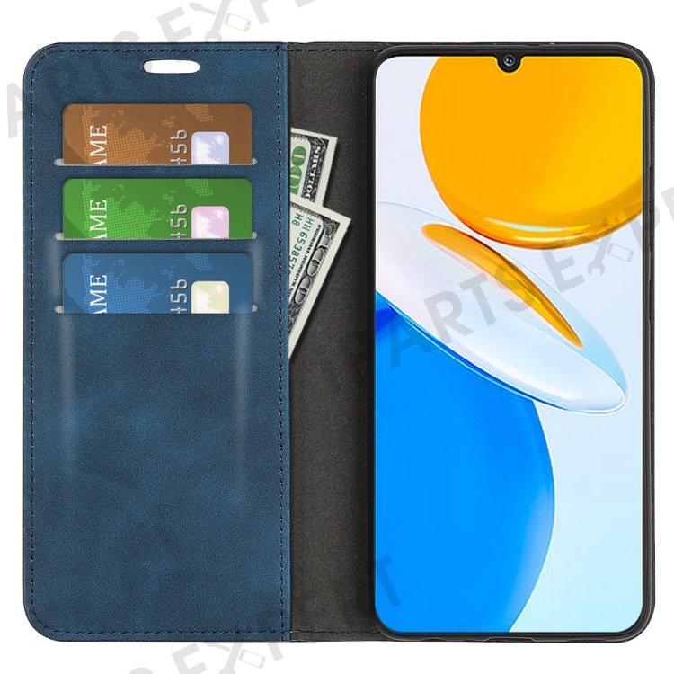 For Honor X7 Skin-touch Feeling PU Leather Cover Magnetic Auto-absorbed Phone Wallet Stand Case - Blue