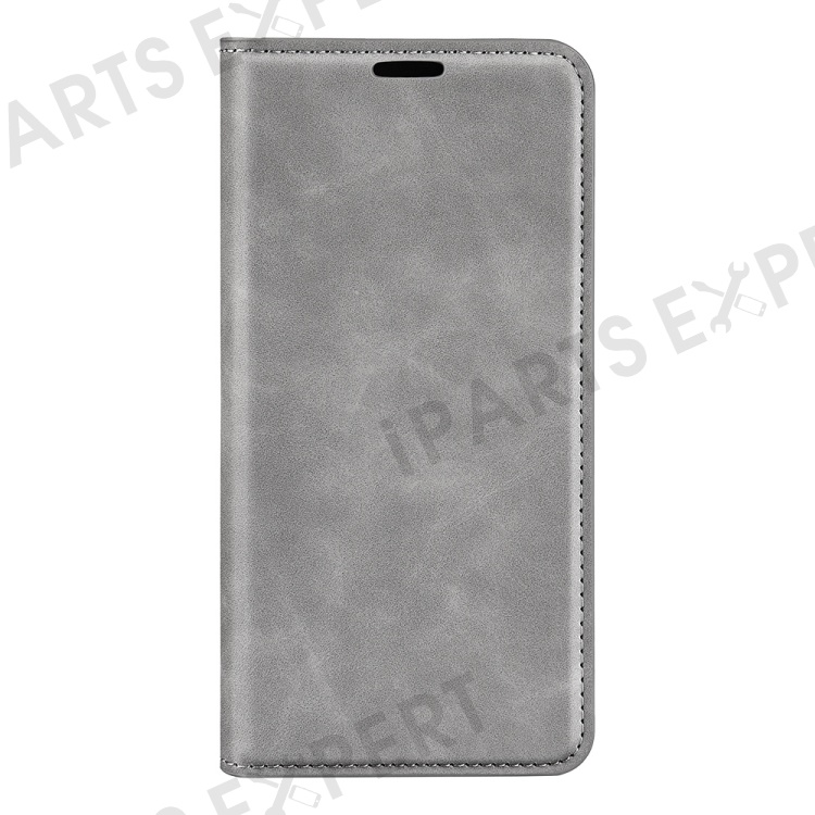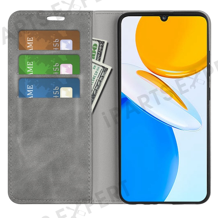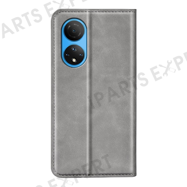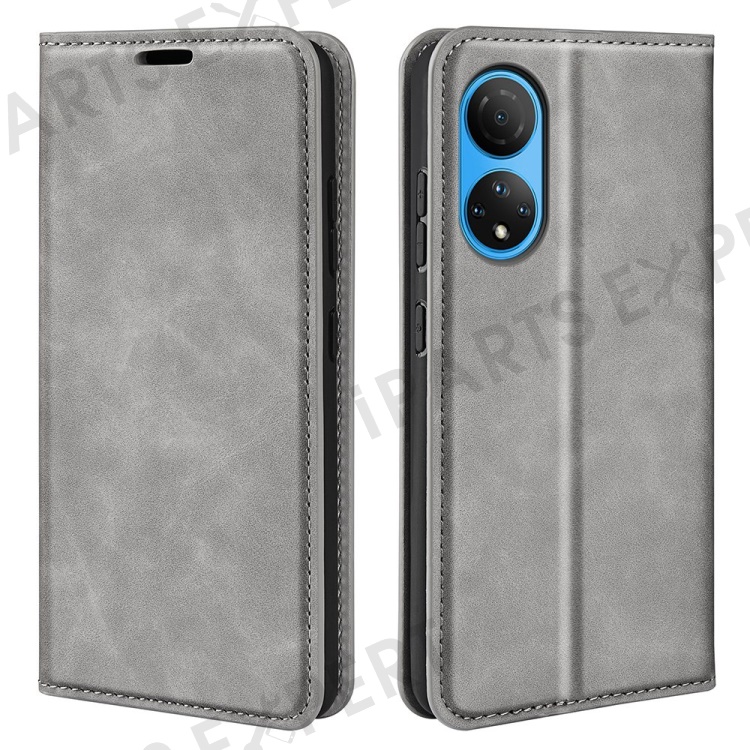 For Honor X7 Skin-touch Feeling PU Leather Cover Magnetic Auto-absorbed Phone Wallet Stand Case - Grey